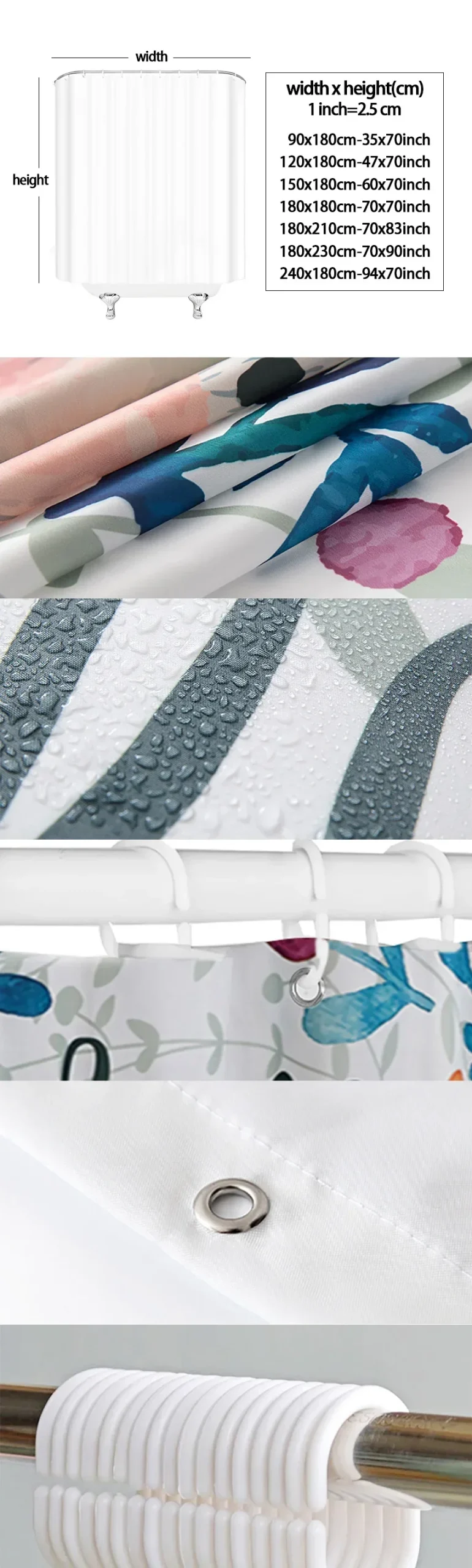 This shower curtain is made from premium polyester, known for its durability and easy maintenance. Its fabric is not only aesthetically pleasing but also quick-drying, reducing mildew buildup while maintaining the pristine condition of your bathroom aesthetics.