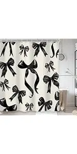 In addition to its aesthetic appeal, this curtain serves as a functional barrier that prevents water from spilling out onto your bathroom floor. The Black and White Bows design offers both style and practicality, making it a valuable addition to any home.