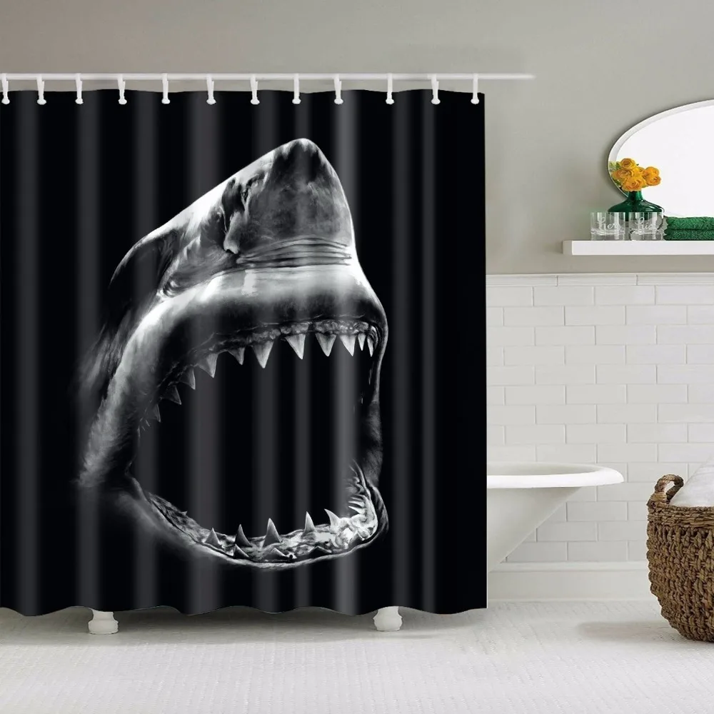 The Black and White Scary Shark curtain is crafted with high-quality materials that ensure resilience and longevity. It stands strong against daily wear, allowing it to maintain its captivating appearance over time while enhancing your bathroom’s overall appeal.