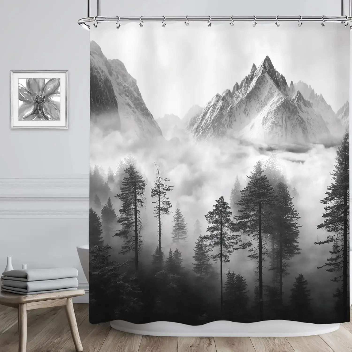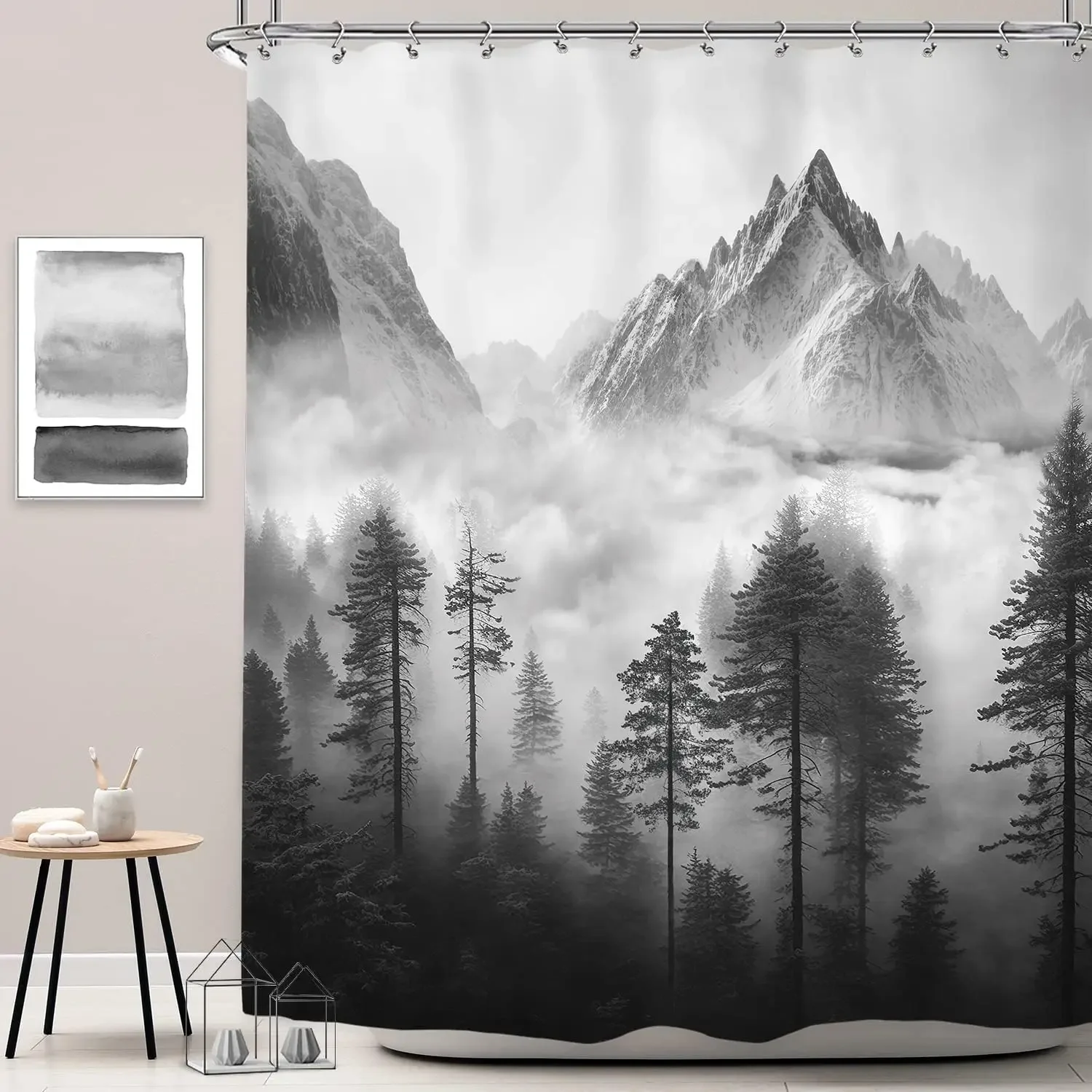 Discover elegance with the Black Mountain Woodland shower curtain for a serene bathroom upgrade.