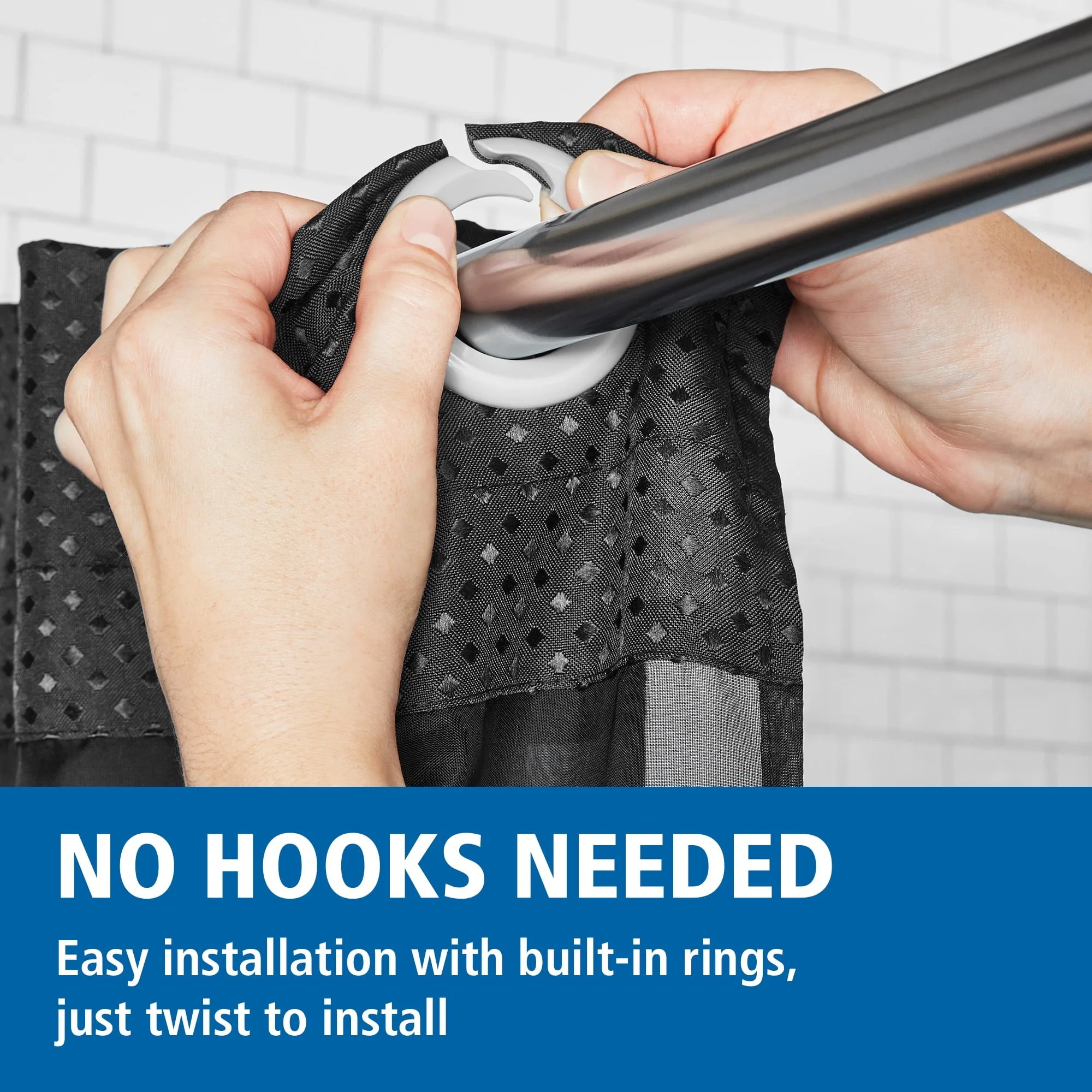 What makes the Black Shower Curtain with Built-in Rings stand out is its convenience. The built-in rings streamline the installation process, ensuring a smooth glide every time you enter the shower. This practical aspect easily enhances your daily routine with simplicity and efficiency.