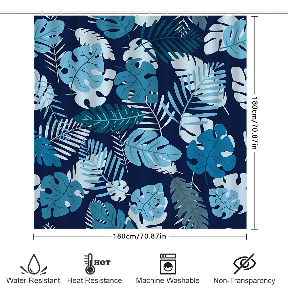 The waterproof and mildew-resistant properties of the Blue Tropical Leaf Shower Curtain ensure longevity and peace of mind. Its innovative design repels water, preventing unwanted dampness and maintaining a fresh atmosphere. This ensures you can enjoy your shower with confidence.