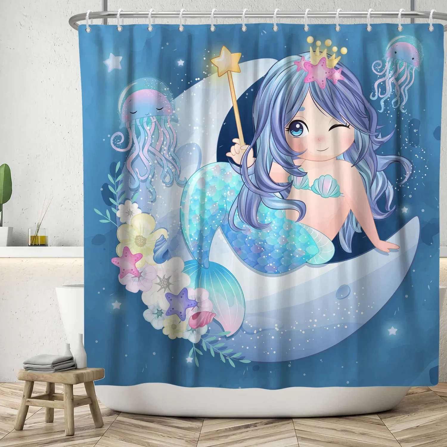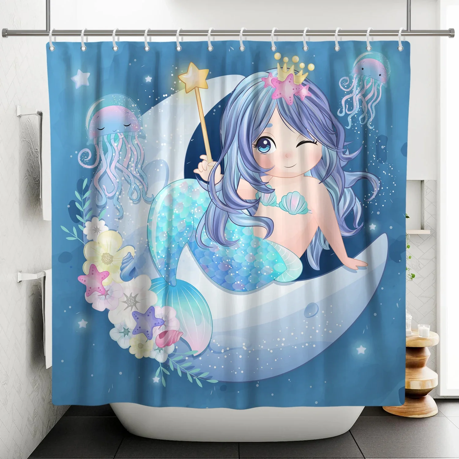 Customizable in size, the Cartoon Seabed Mermaid Bath perfectly fits various bathroom settings, adapting to diverse home aesthetics. It enhances the ambiance with its playful design while ensuring complete practicality with a set of twelve sturdy hooks.