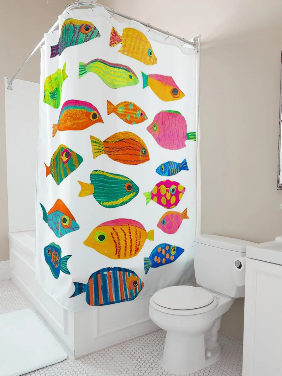 Featuring a modern Nordic style with its playful cartoon fish pattern, this shower curtain blends with a wide array of bathroom décors. Whether in a minimalist all-white bathroom or a vibrant colored space, the Colorful Cartoon Fish Shower Curtain for Kids Bathroom adds a touch of artistic flair that appeals to kids and parents alike.