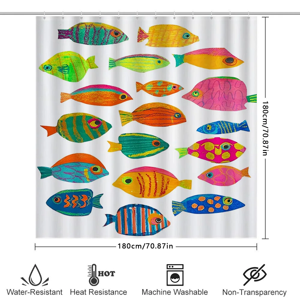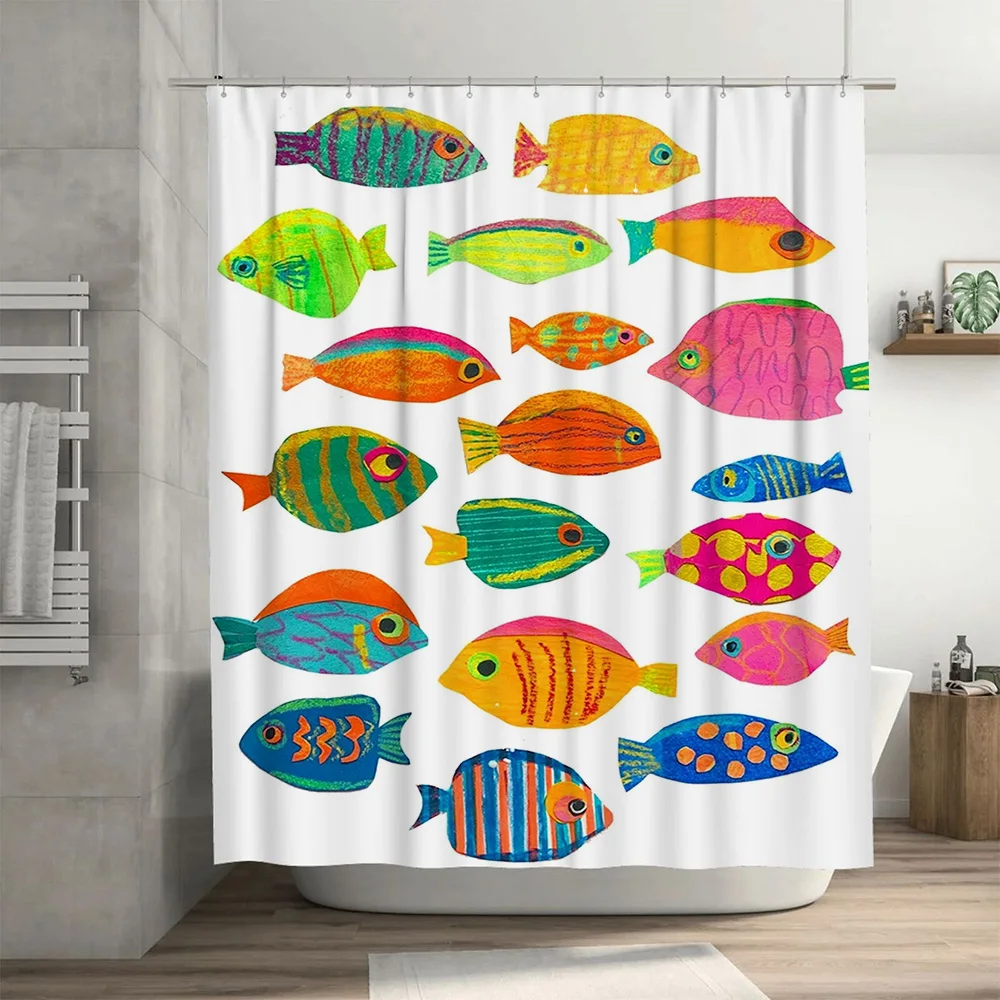 Colorful Cartoon Fish Shower Curtain for Kids Bathroom