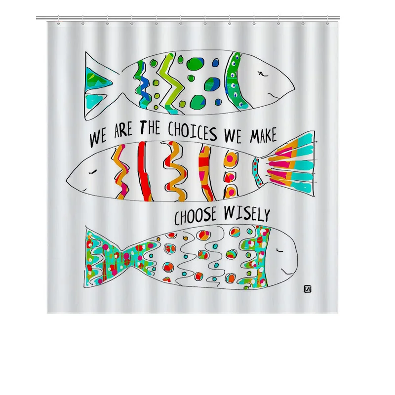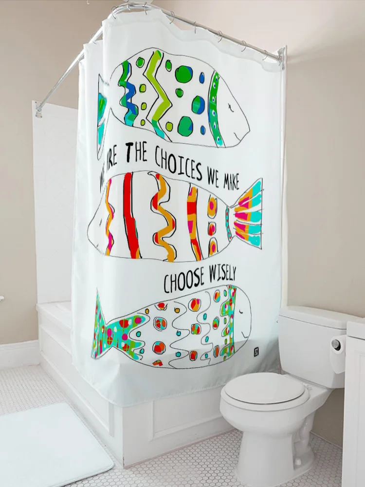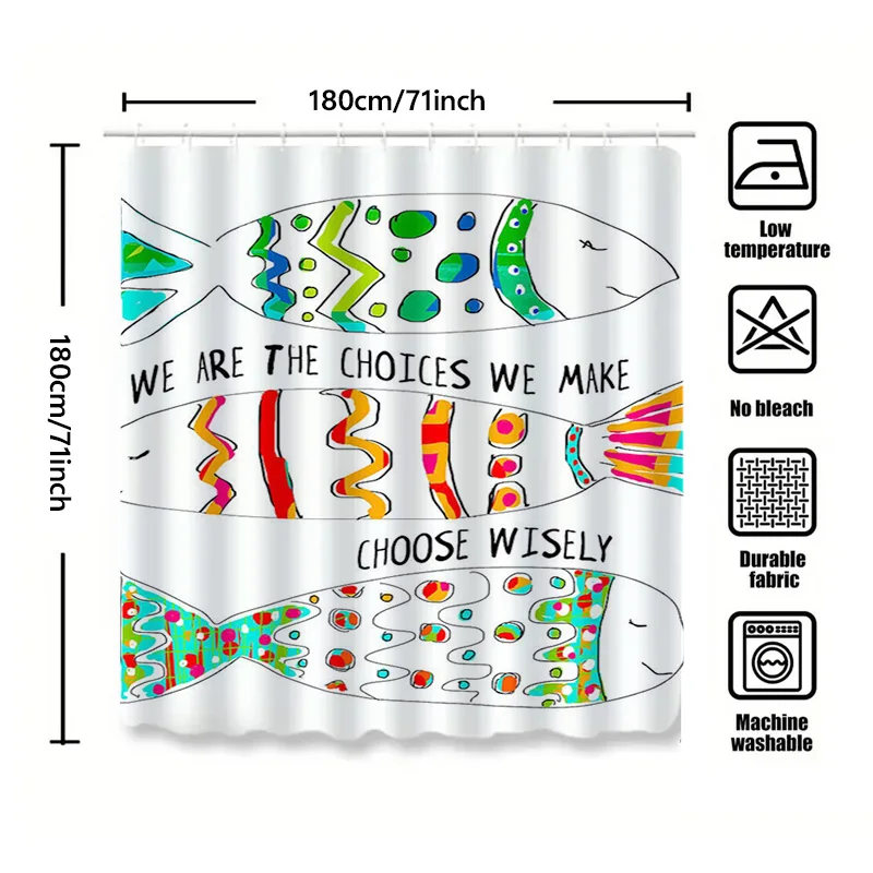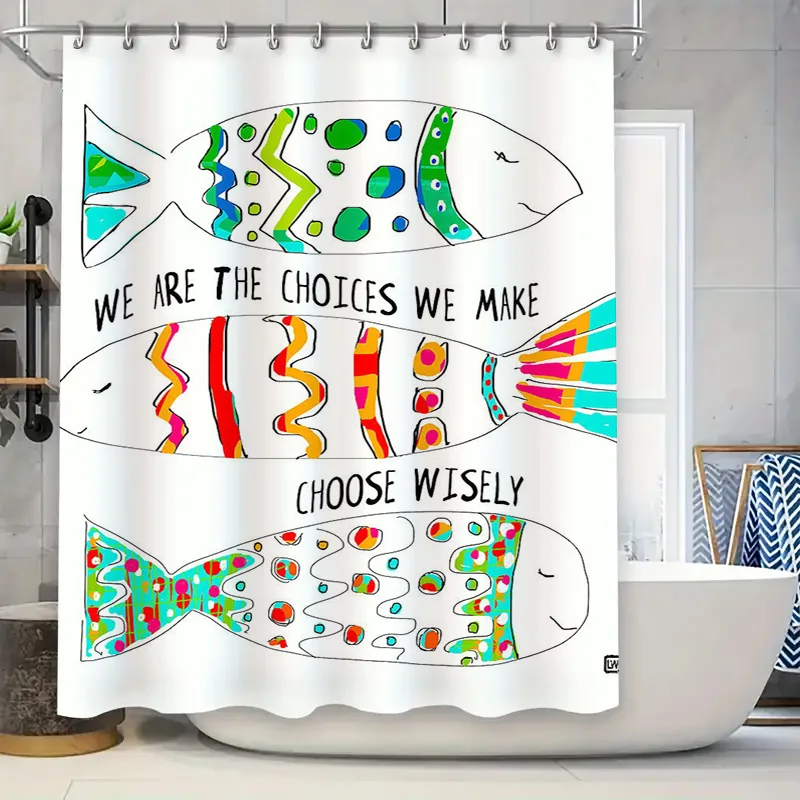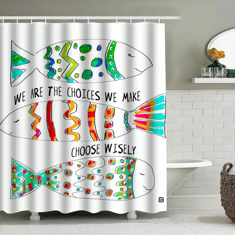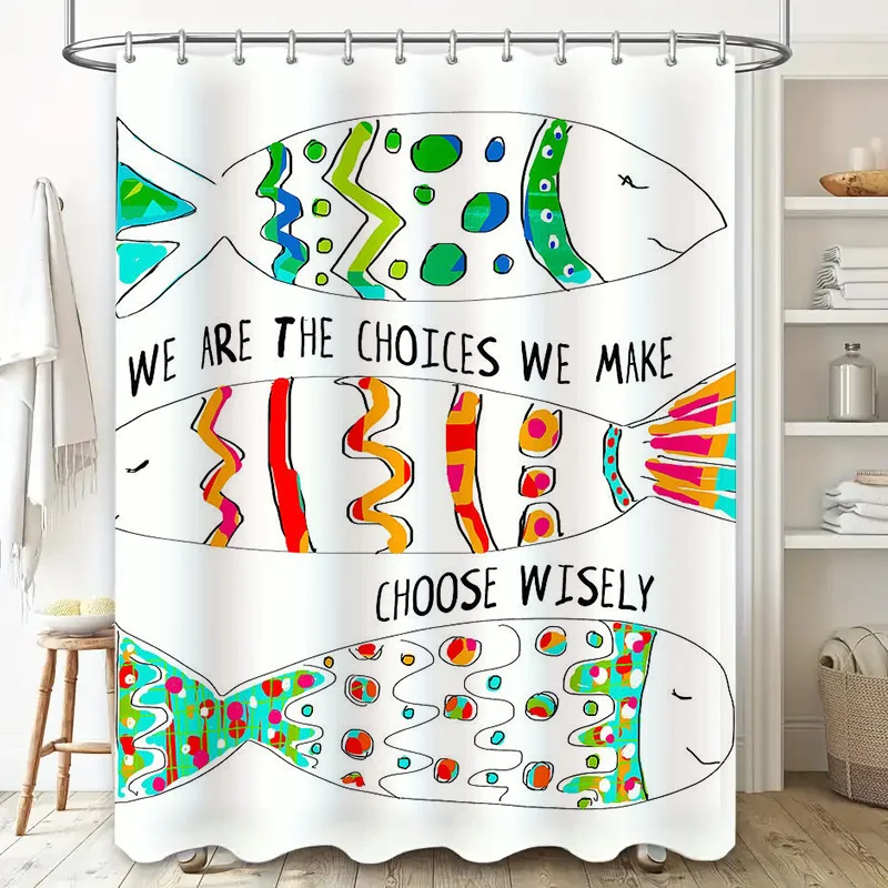 The Colorful Fish Quote Shower Curtain is designed to bring a splash of creativity and color to your bathroom decor. With vibrant illustrations and inspiring quotes, this shower curtain transforms a usual space into an extraordinary showcase of style.