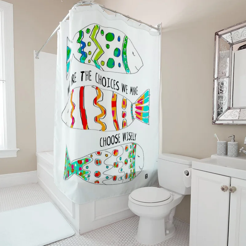Discover the Quality of the Colorful Fish Quote Shower Curtain