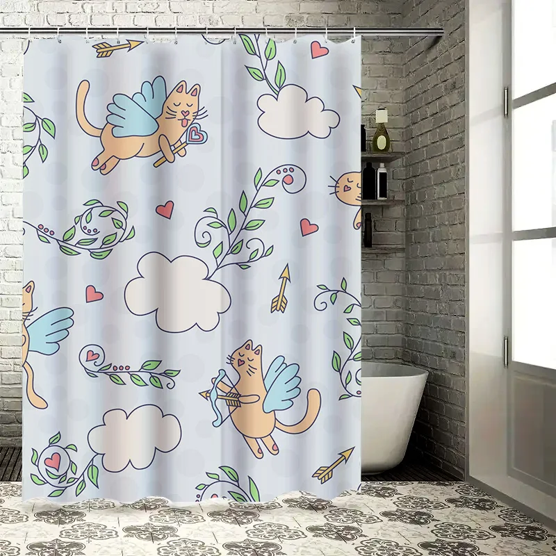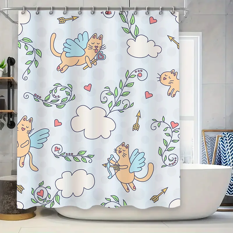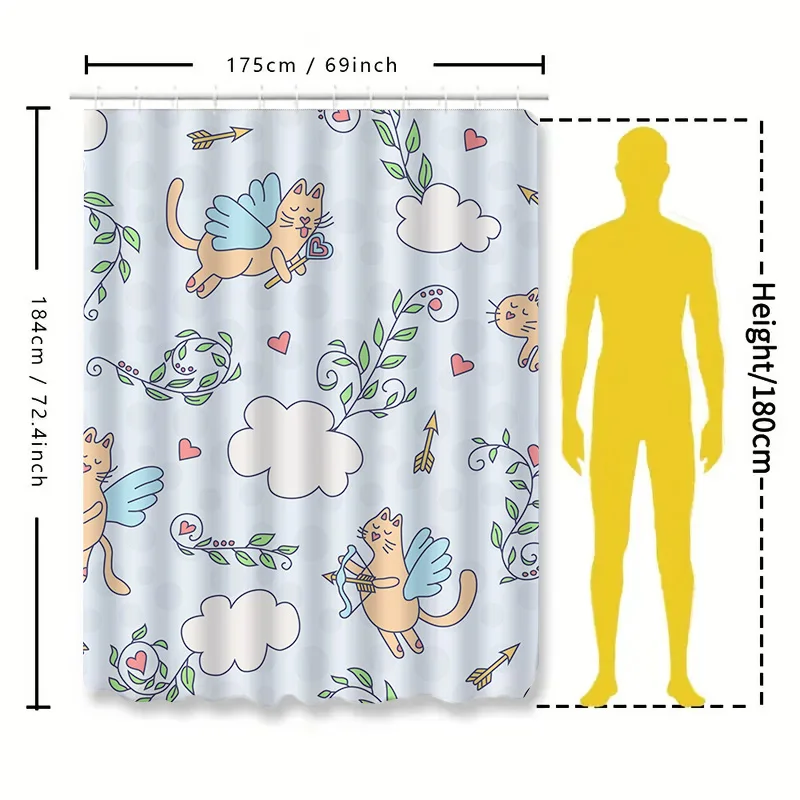 With the Cupid Cat Valentine Shower Curtain, you benefit from an innovative design that combines aesthetic appeal with practical features. Crafted from antibacterial and mildew-resistant materials, it ensures that your bathroom remains hygienic and safe for all family members.