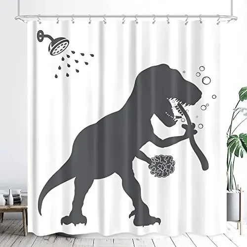 Dinosaur Bubble Bath Shower Curtain – Fun Black T-Rex Design for a Unique Bathroom Makeover