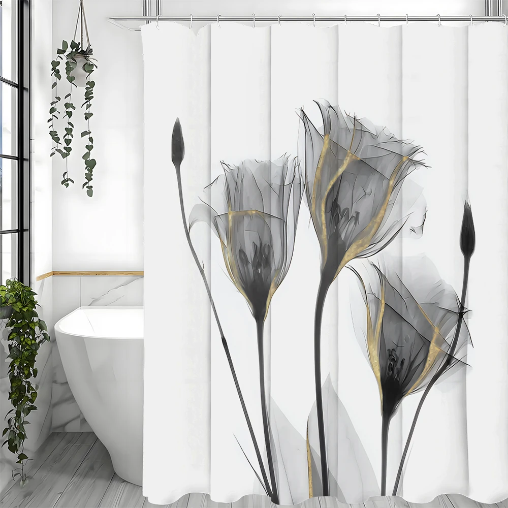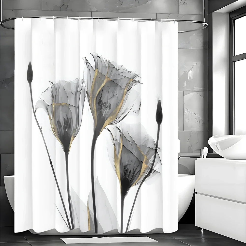 The Elegant Black and Gold Floral Shower Curtain transforms any bathroom into a luxurious retreat. With its intricate floral patterns, the curtain adds an air of sophistication, making it a perfect addition to contemporary and modern interiors.