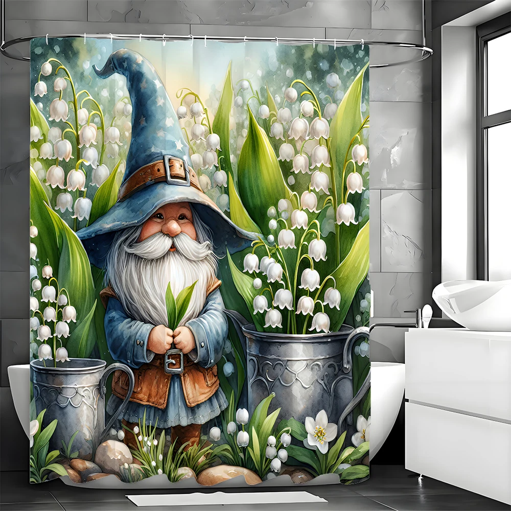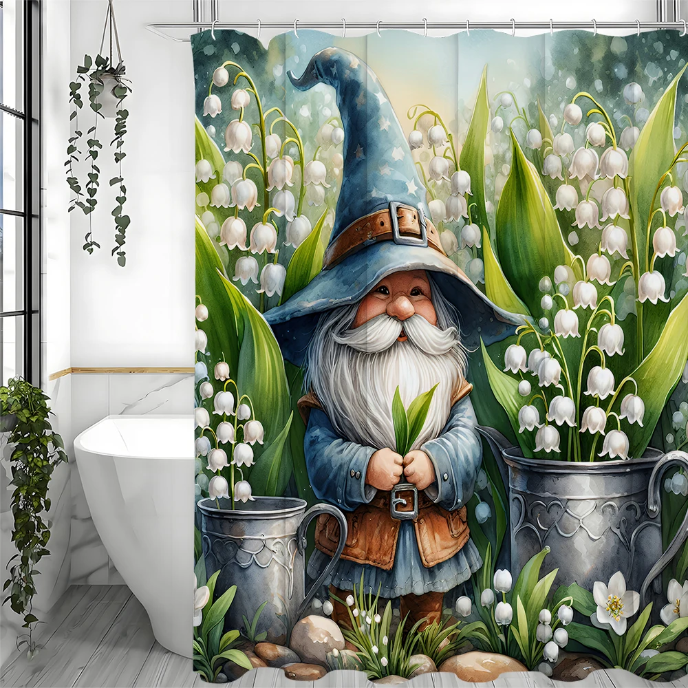 Enhance Your Décor with the Garden Gnome Lily of the Valley Shower Curtain