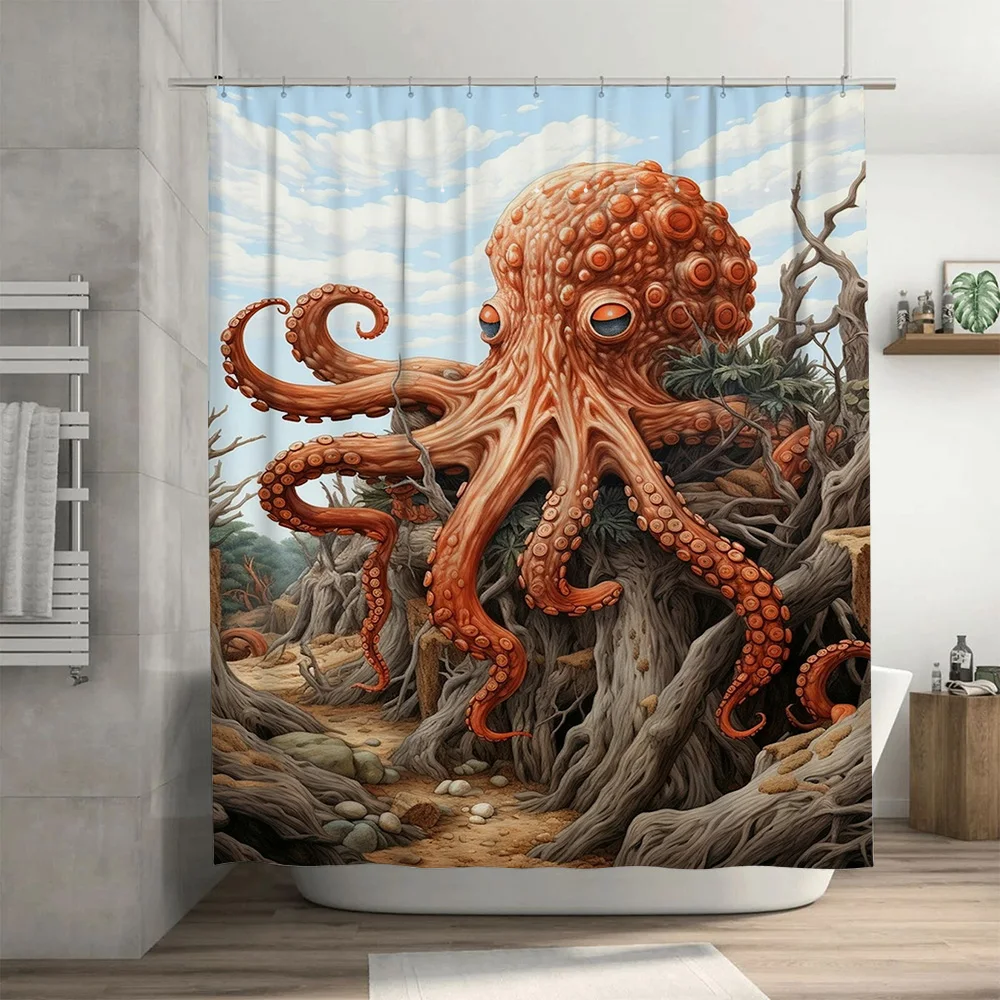Transform your bathroom with the Giant Octopus Forest Shower Curtain