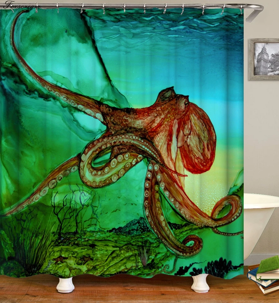 Transform the ambiance of your bathroom with the captivating allure of the Green Octopus 3D cartoon shower curtain. This charming accessory is designed to infuse a playful marine vibe into your space, adding a sense of creativity and vibrancy that will make your daily shower experience a delightful escape.