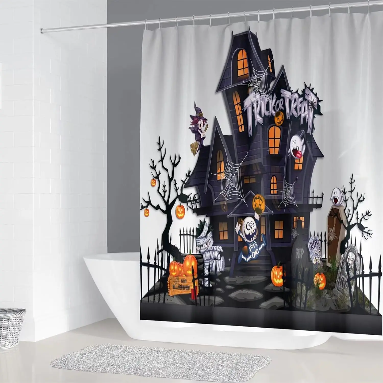Frighteningly Stylish and Functional: Haunted Mansion Halloween Shower Curtain Set