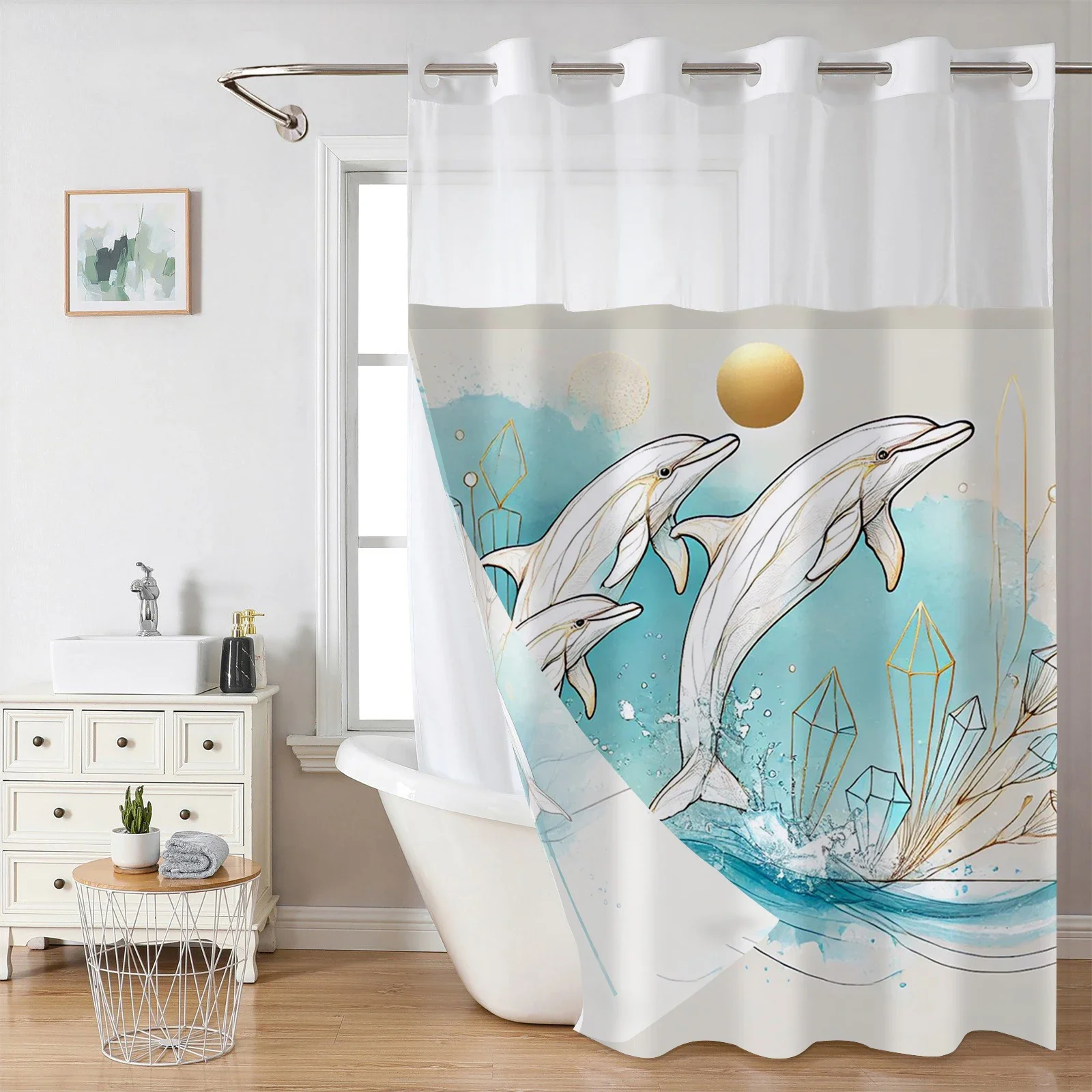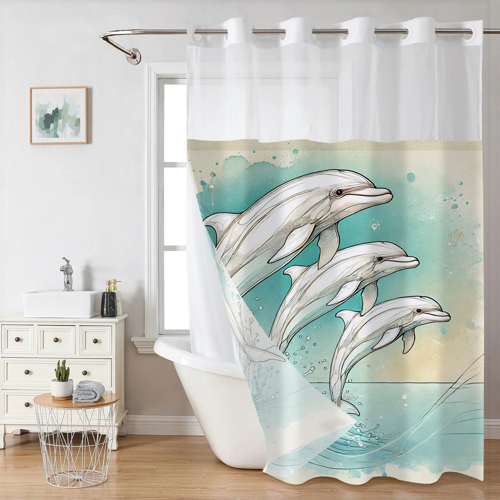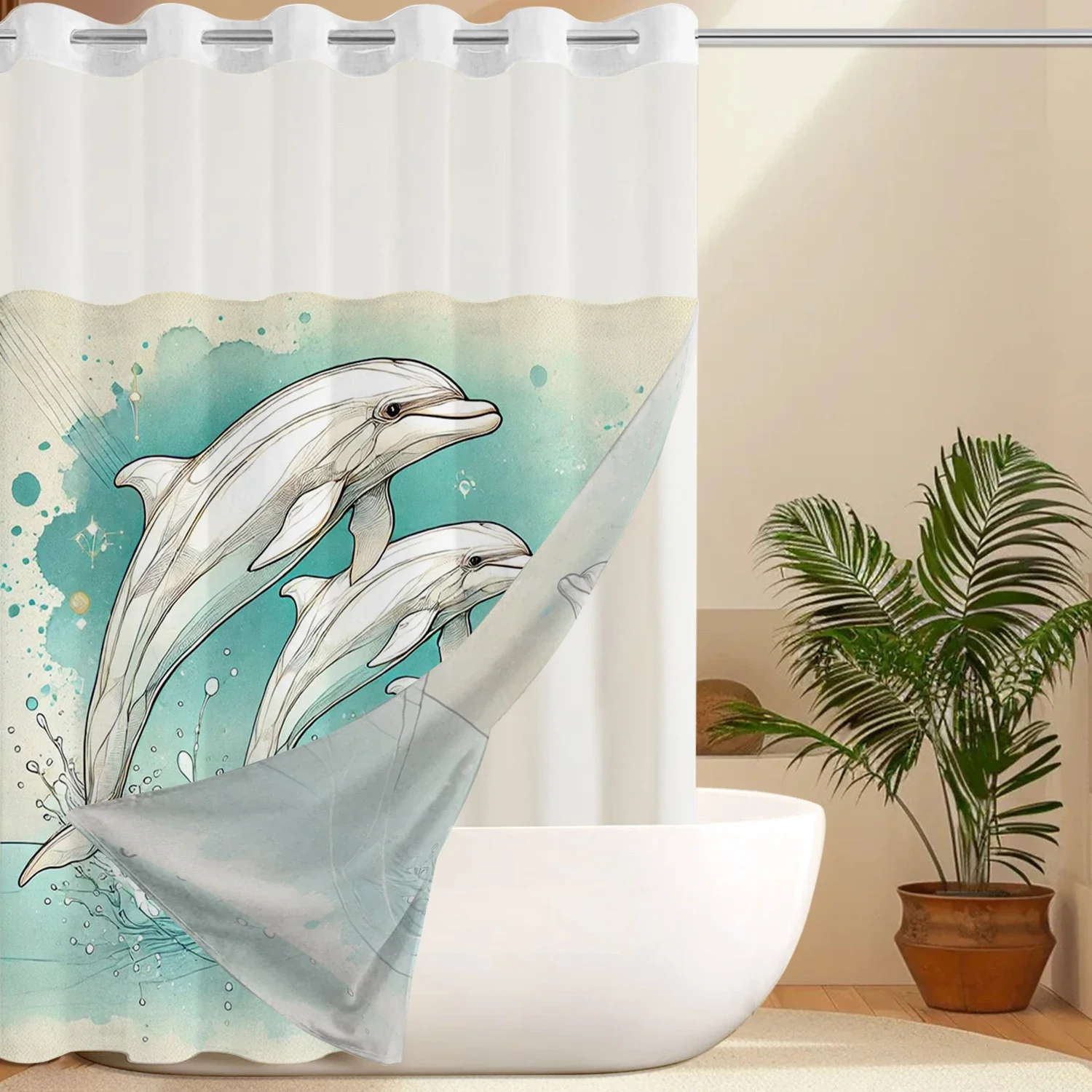 Elevate Your Bathroom with the Hookless Dolphin Ocean Shower Curtain