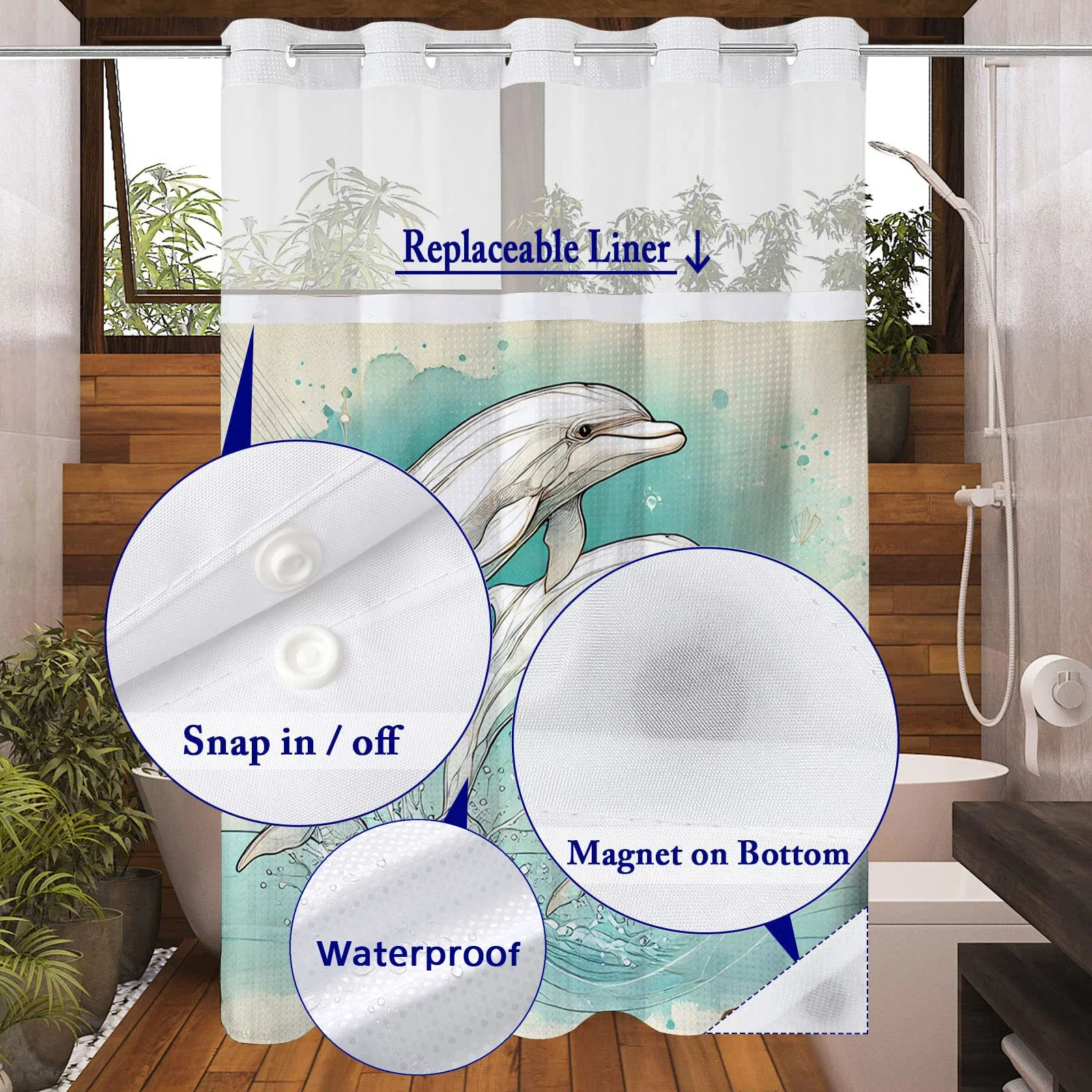 Durability Meets Design in the Hookless Dolphin Ocean Shower Curtain