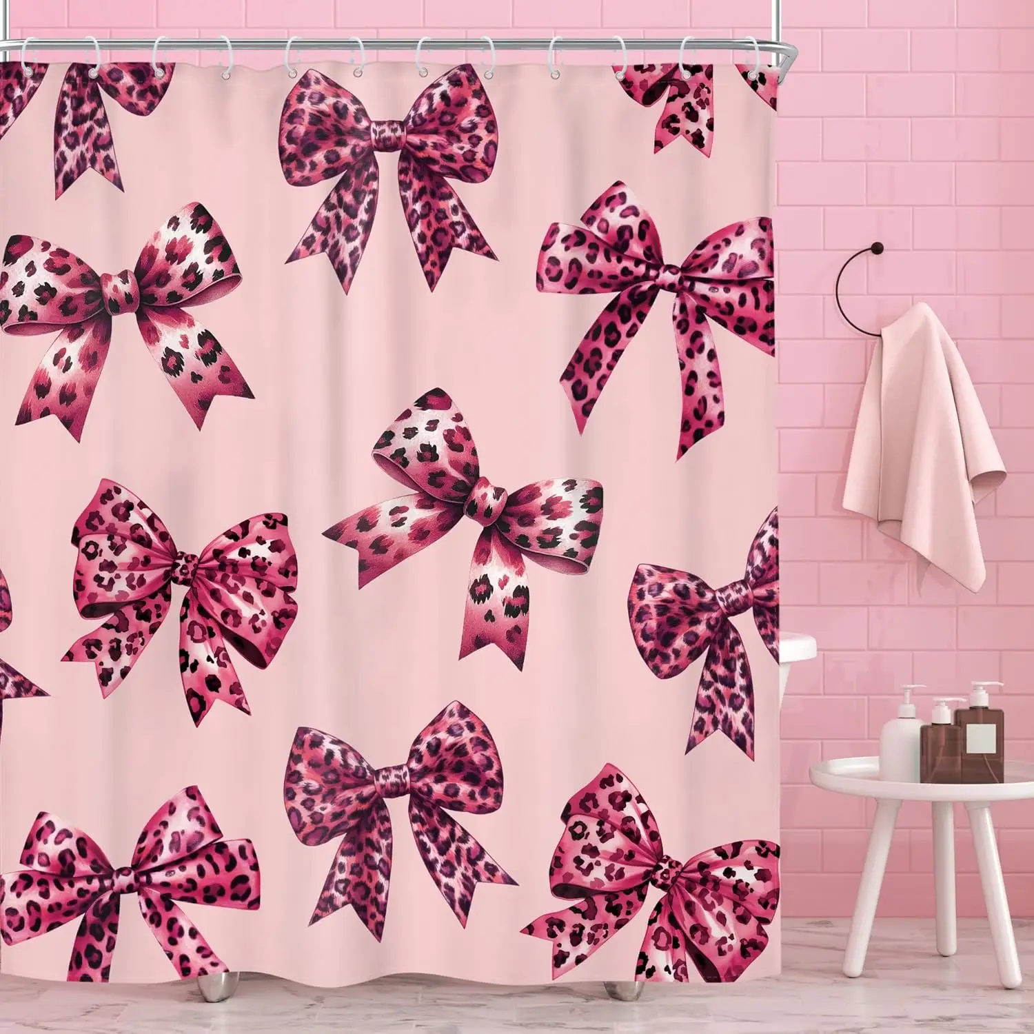 Choosing the Pink Leopard Bow means opting for a unique combination of design and practicality. This shower curtain is the ideal option for those wanting to inject a touch of glam into their bathroom. Its distinctive pattern and bow design make it a standout feature and conversation starter in any home.