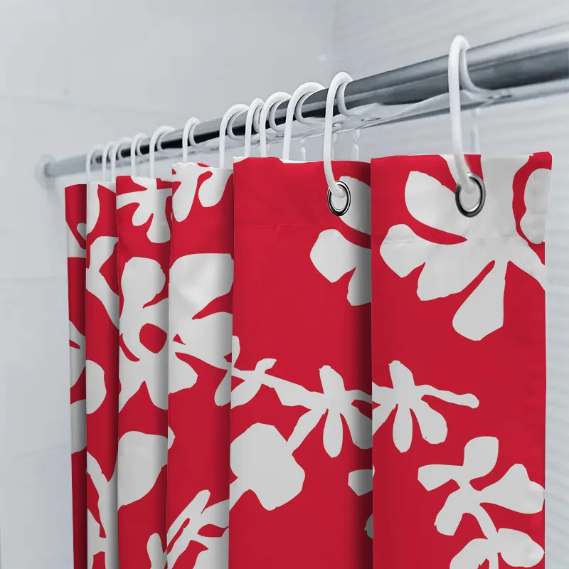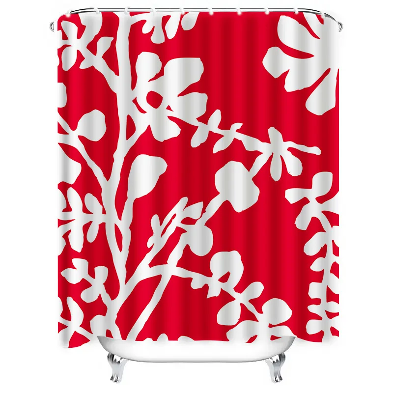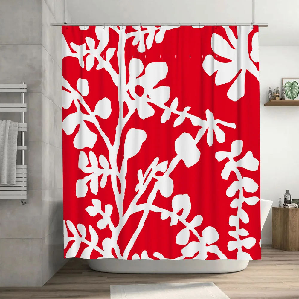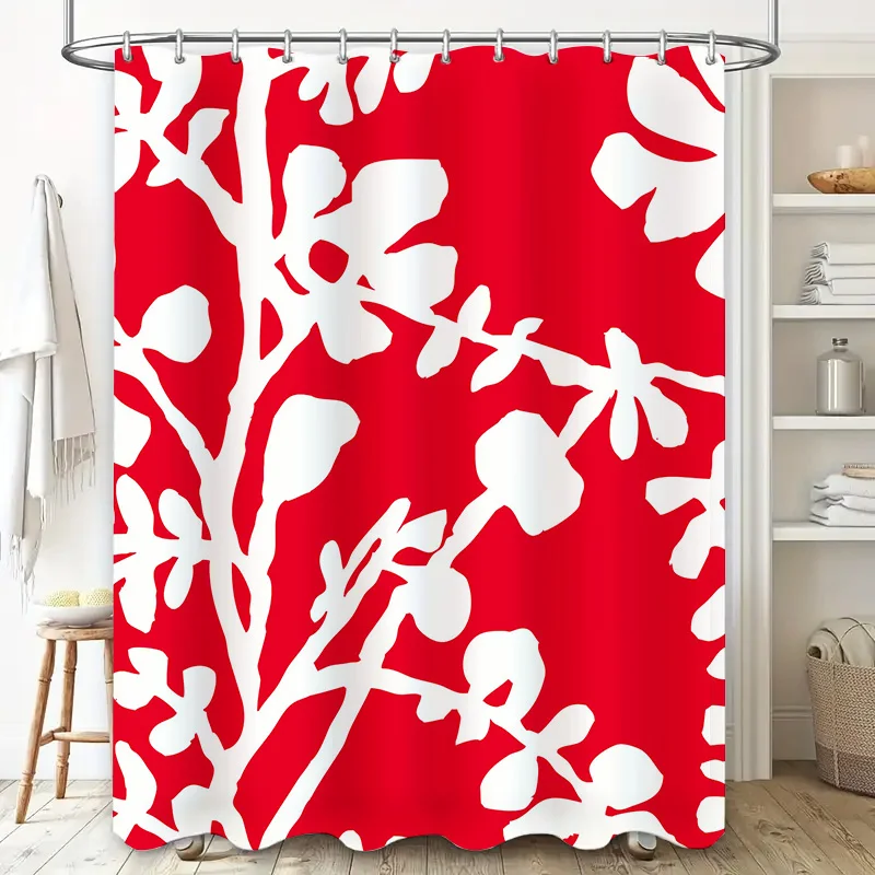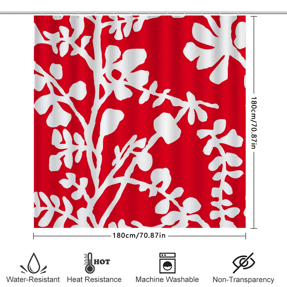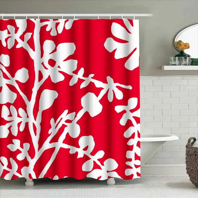 Durable and Eco-Friendly Red Floral Print Shower Curtain – Bold Modern Bathroom Decor