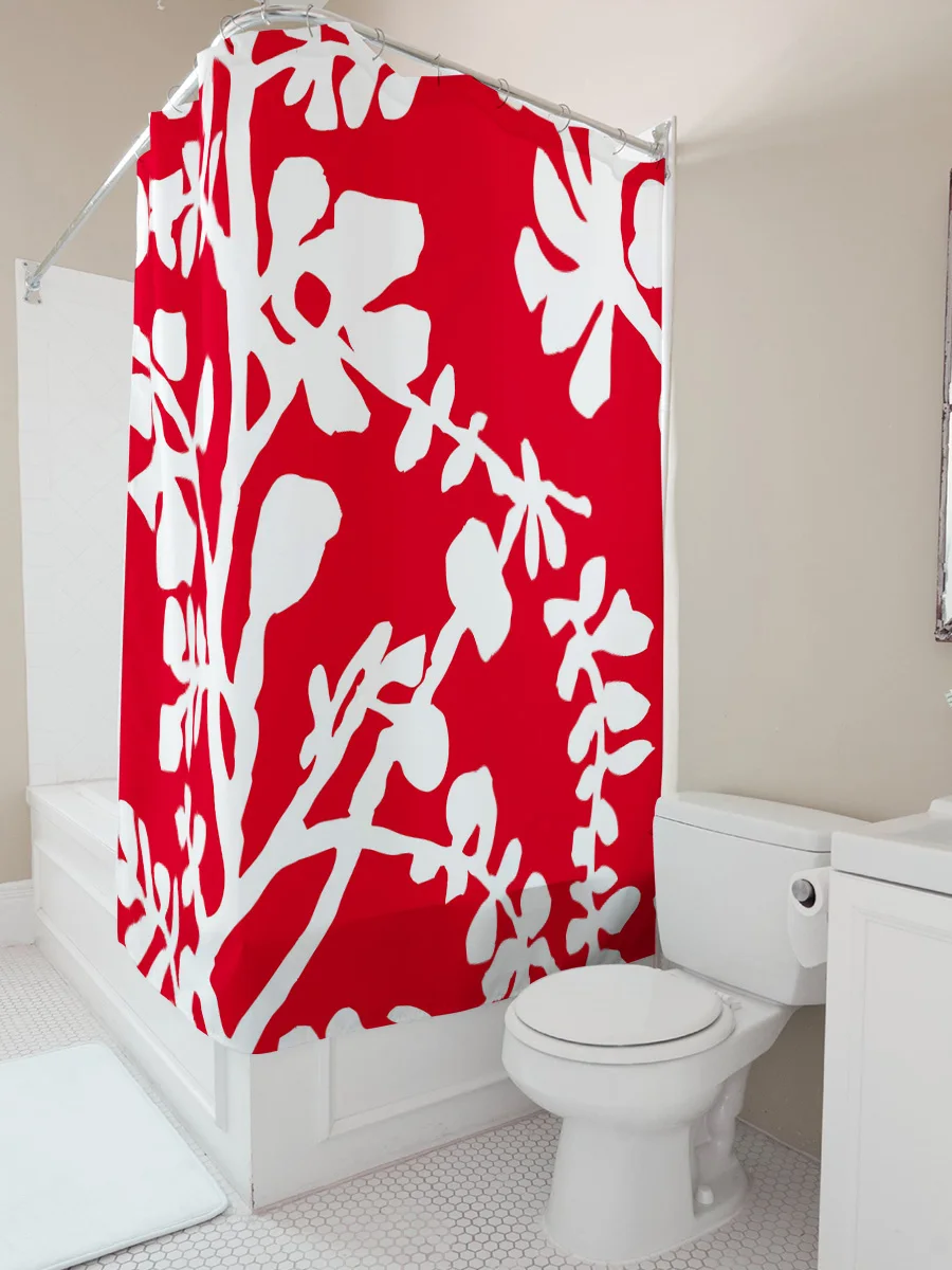 Red Floral Print Shower Curtain – Bold Modern Bathroom Decor for a Stylish Look
