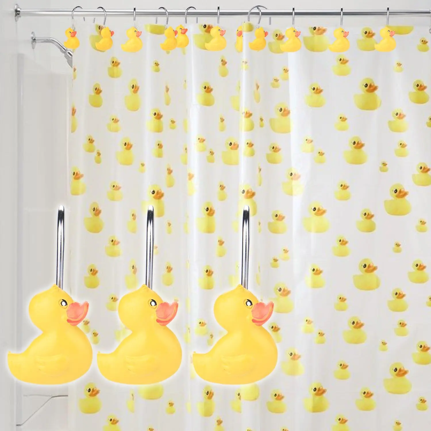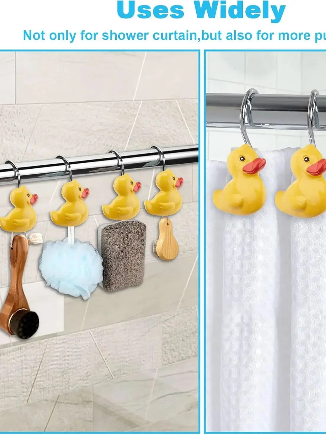 Experience Durability and Style with Rubber Duck Shower Curtain Hooks – 2Pcs Cute Yellow Ducks