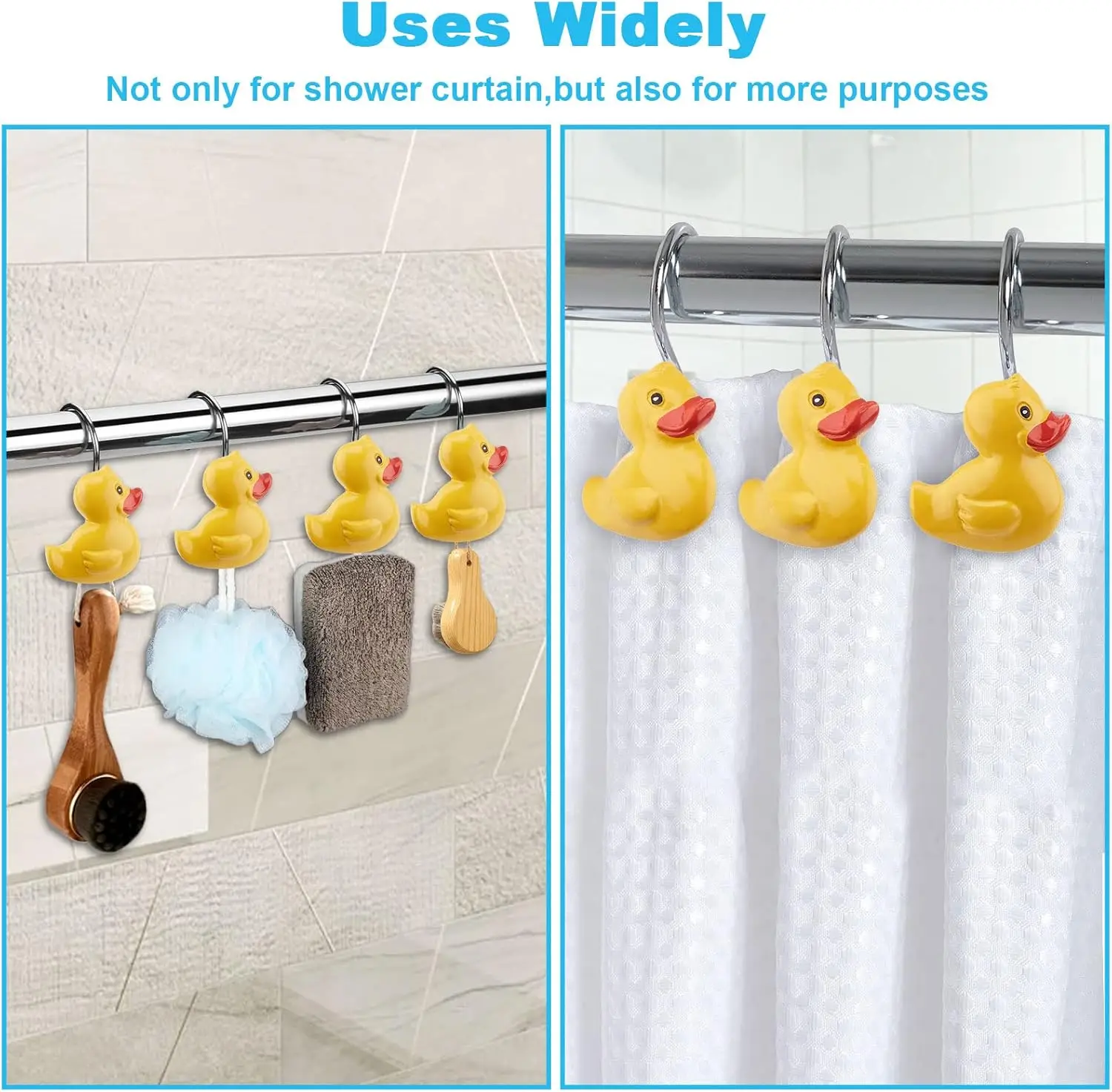 Easy Installation with Rubber Duck Shower Curtain Hooks – 2Pcs Cute Yellow Ducks