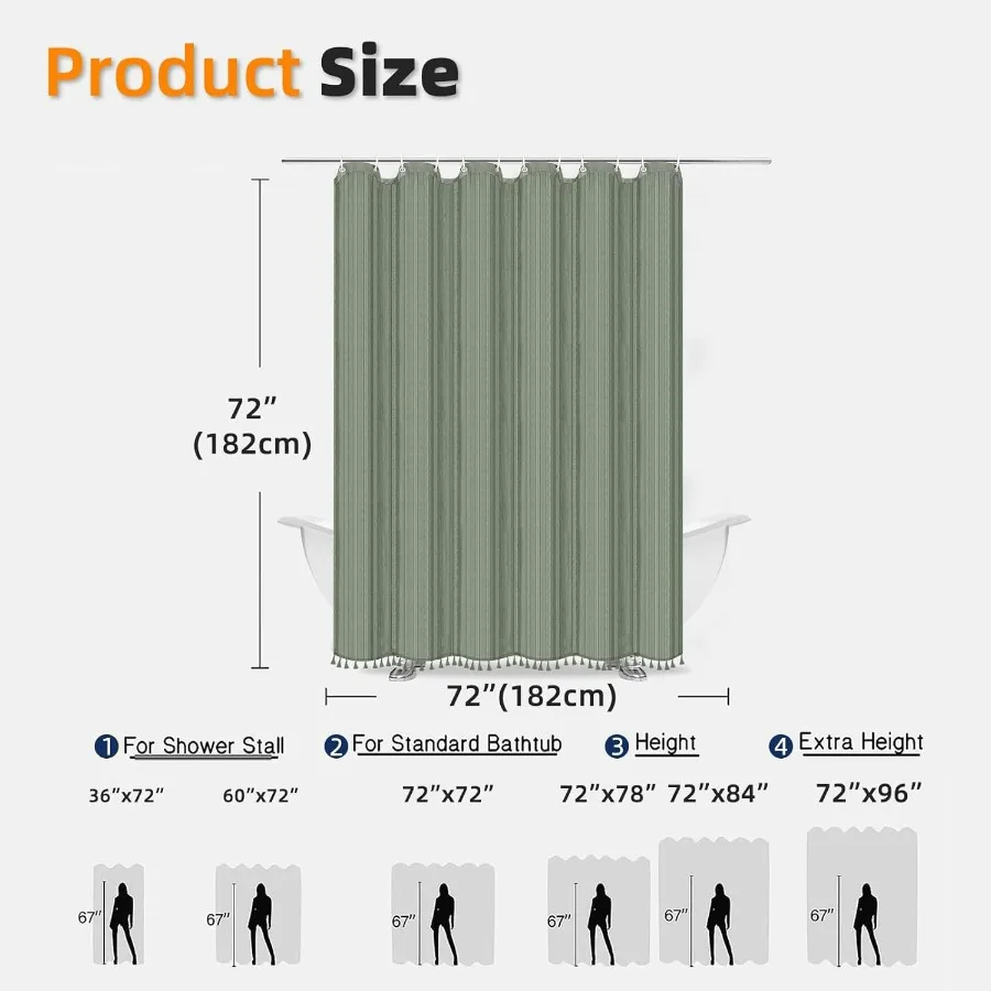 The high-quality material of the Sage Green Tassel Shower Curtain ensures durability and longevity, making it a practical choice for those who value both style and functionality. Immerse yourself in luxury as this curtain enhances your daily routines.