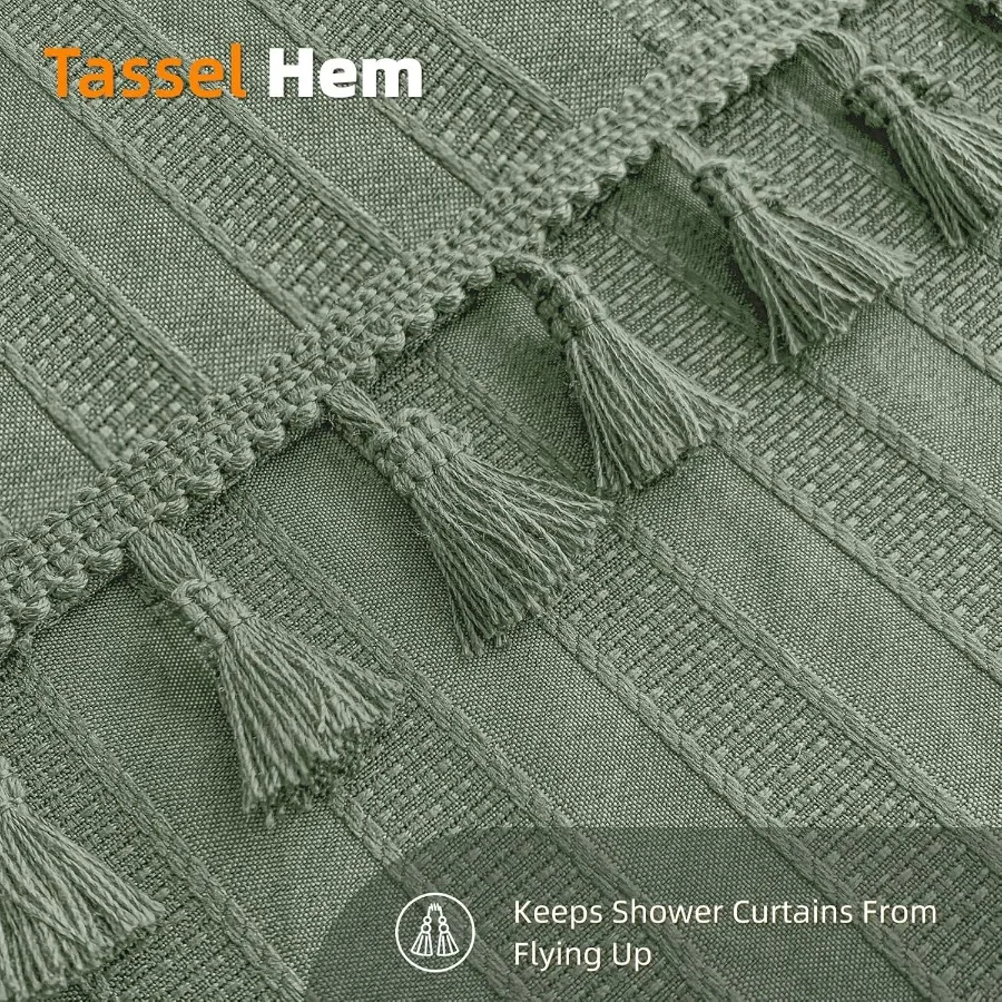 Enhance your bathroom with the elegant Sage Green Tassel Shower Curtain, a perfect blend of style and functionality.