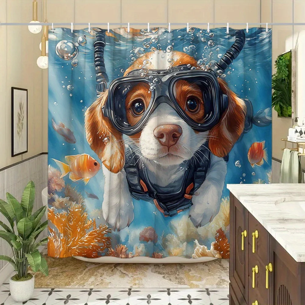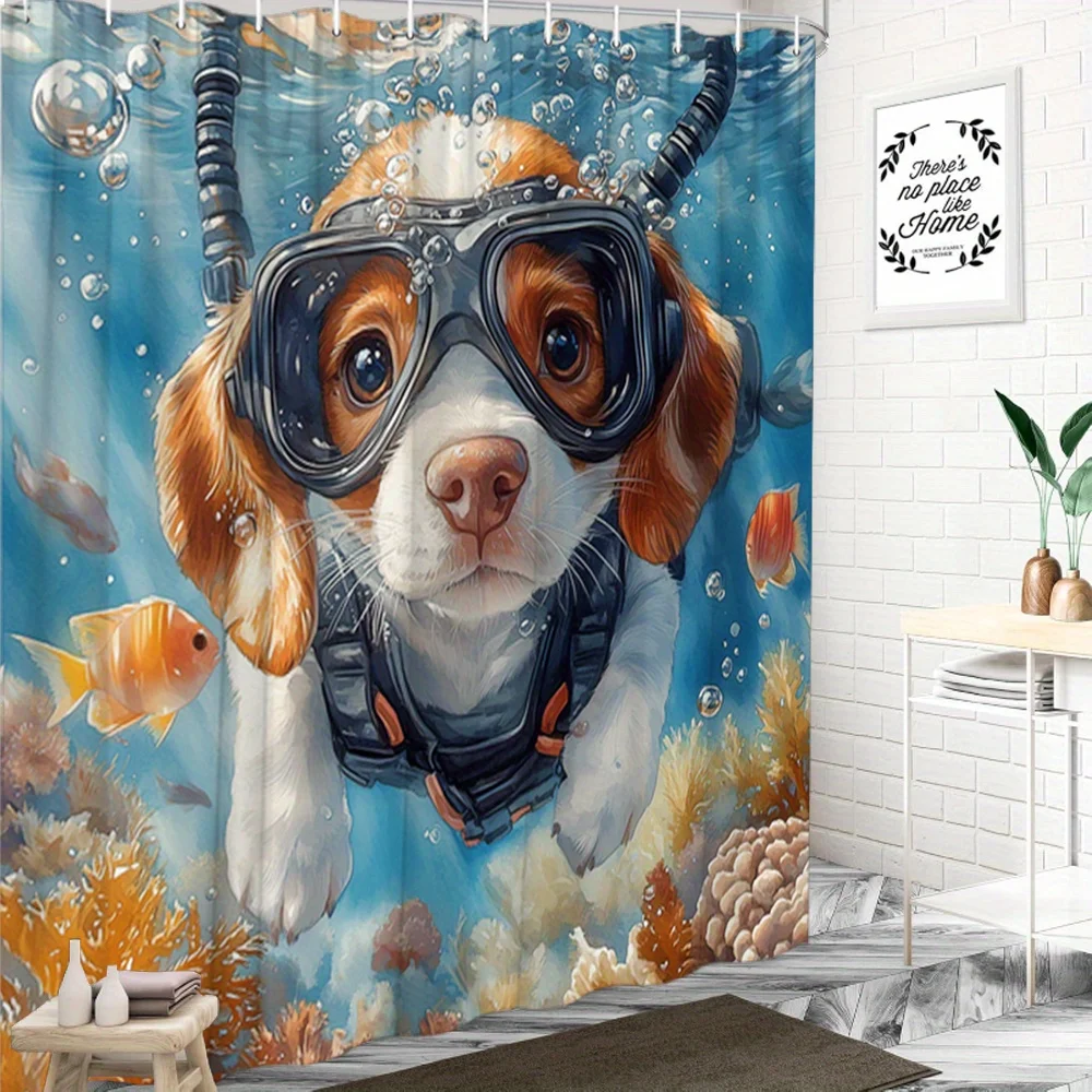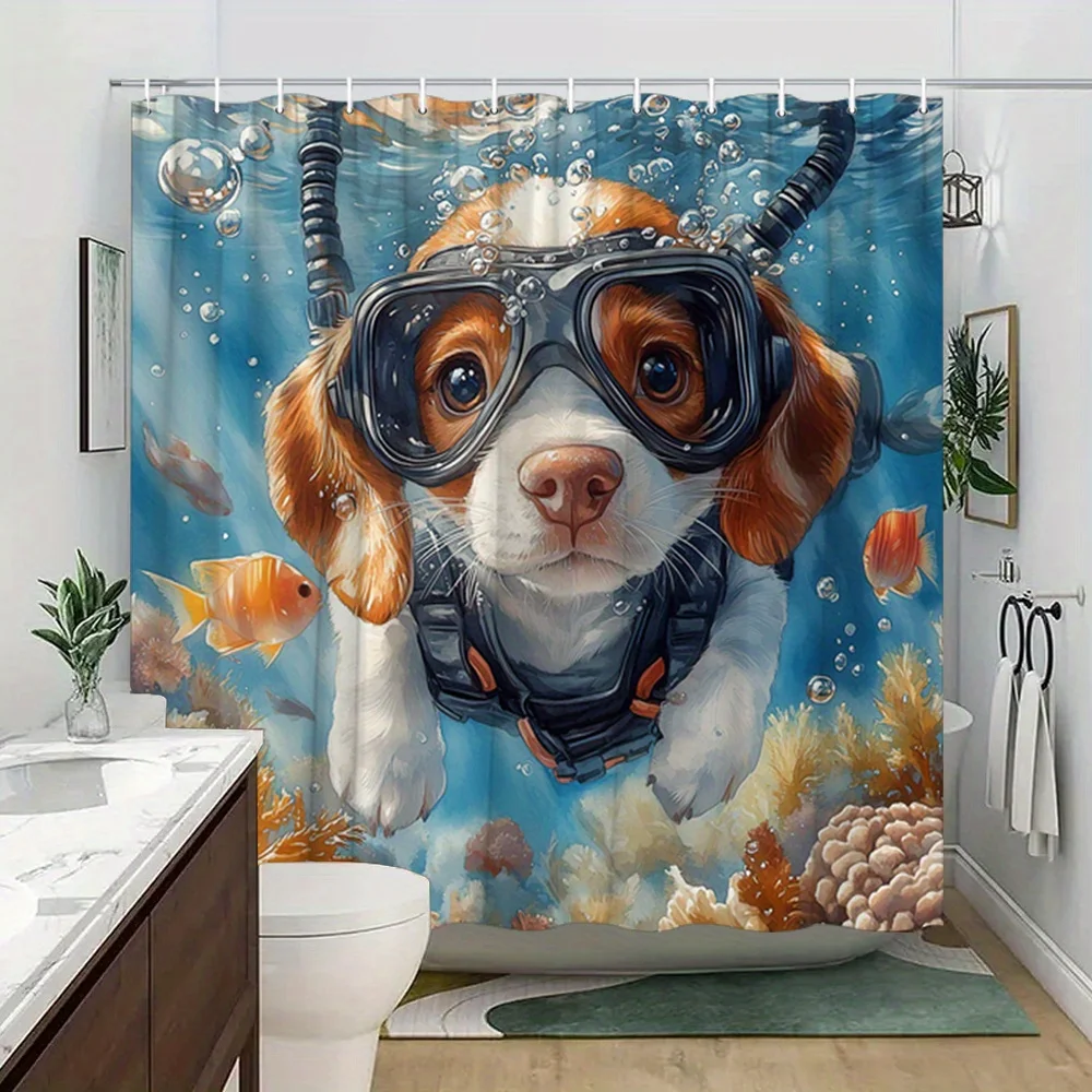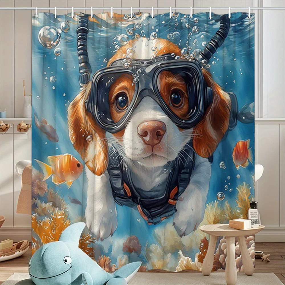 Transform Your Bathroom with the Scuba Diving Dog Shower Curtain