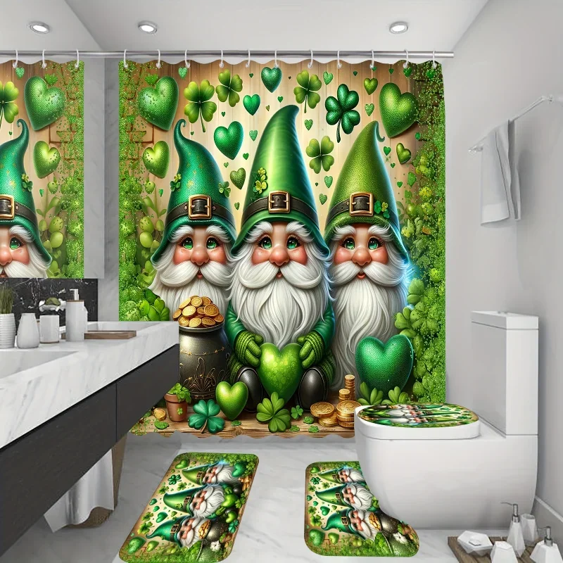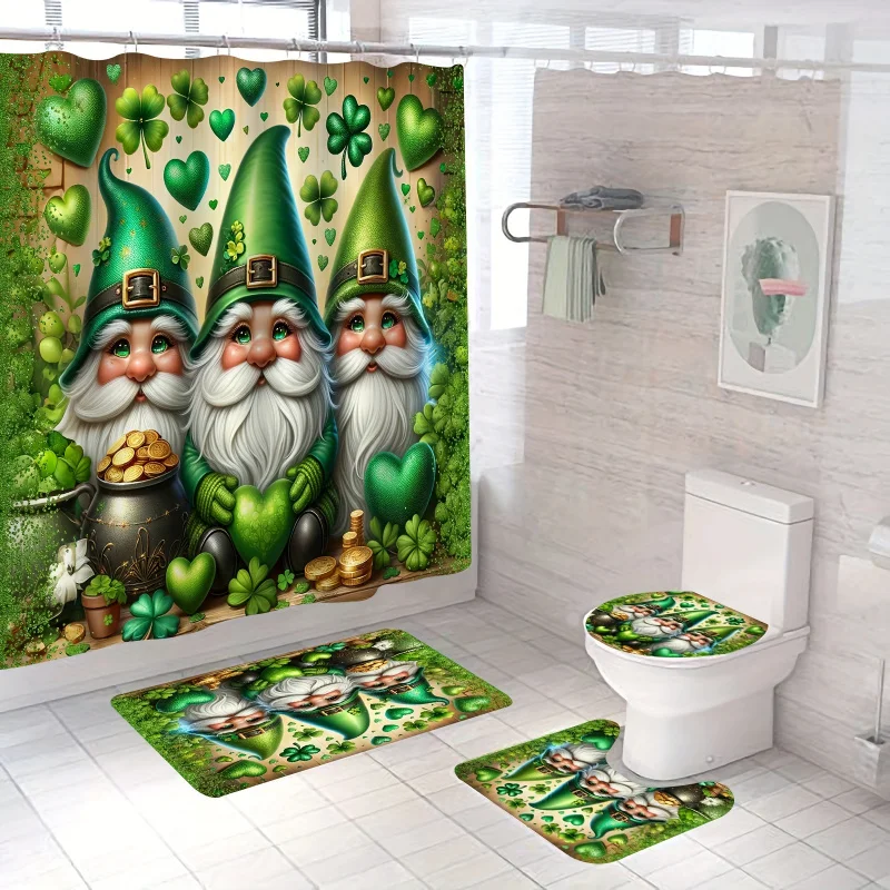 Crafted to bring the essence of St. Patrick’s Day into your home, this bathroom set features charming gold accents that glimmer in the light. The playful gnomes and shamrocks are beautifully woven into the fabric, ensuring durability while maintaining an elegant appearance. This combination of elements transforms any bathroom into a lively and inviting space.