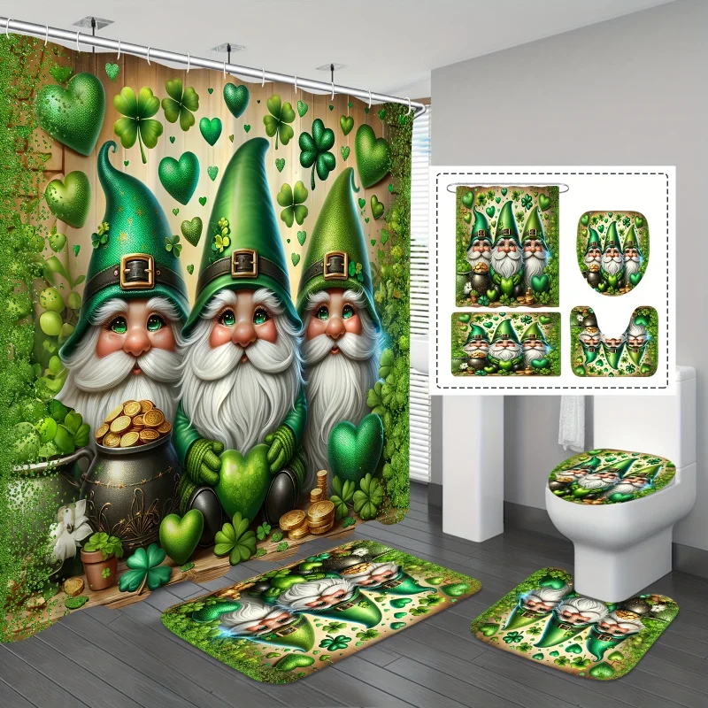 Transform your bathroom with the St. Patrick’s Day Gnome Bathroom Set with Shamrocks & Gold
