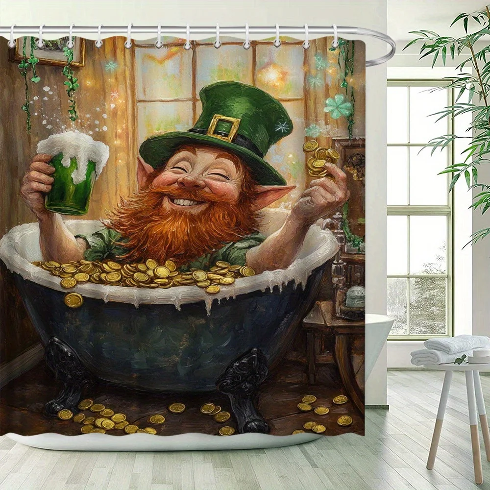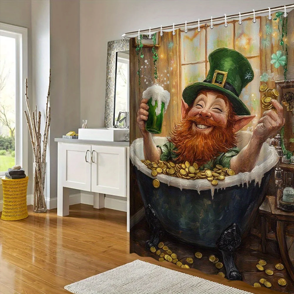Experience the convenience of the St. Patricks Day Leprechaun with Beer and Gold Coins with its easy maintenance. Its polyester fabric is not only durable but also machine washable and quick-drying, allowing you to keep your bathroom space clean and inviting with minimal effort.