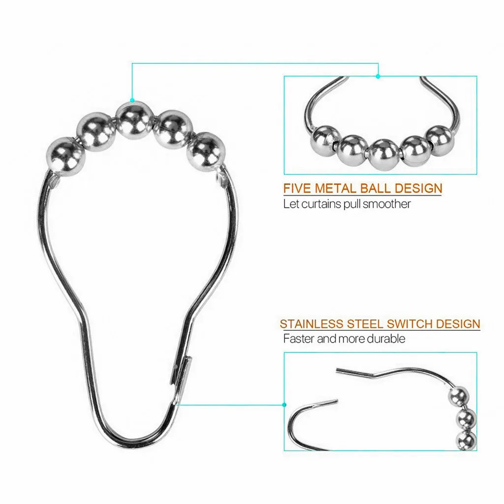 Get Effortless Style with Stainless Steel Roller Ball Shower Curtain Hooks – Set of 12