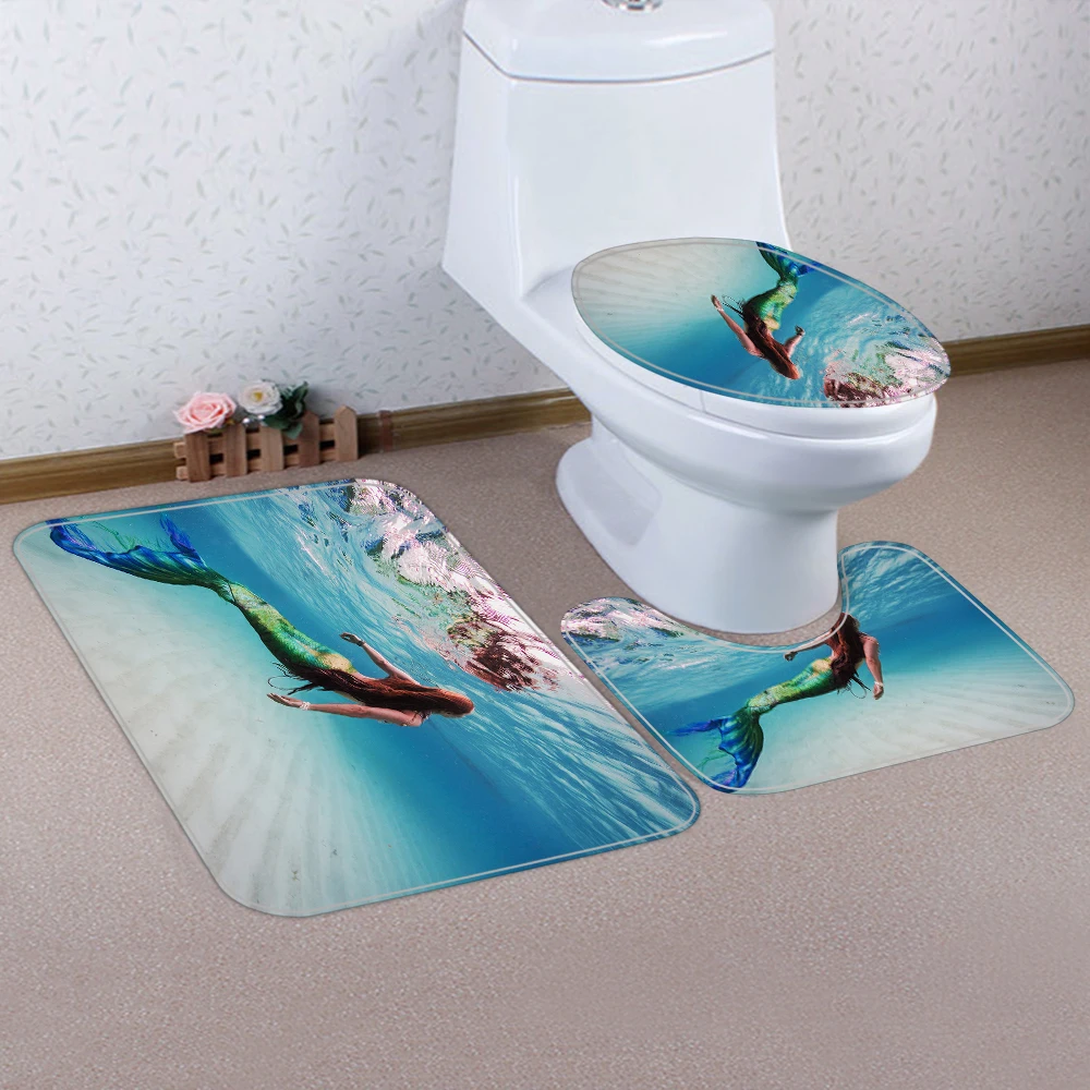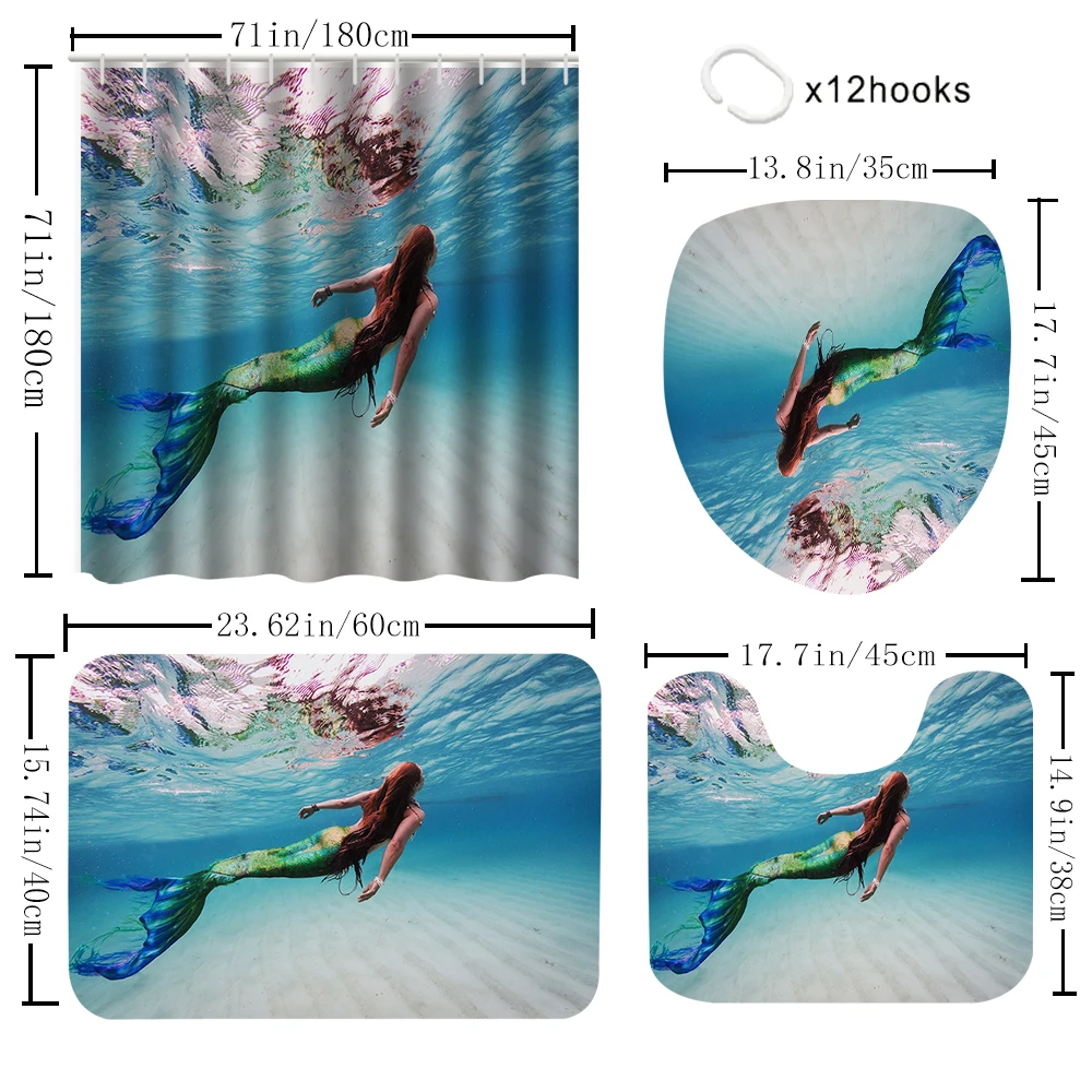Transform your bathroom into a sea escape with the Underwater Mermaid Shower Curtain Set with Mats. Dive in now!
