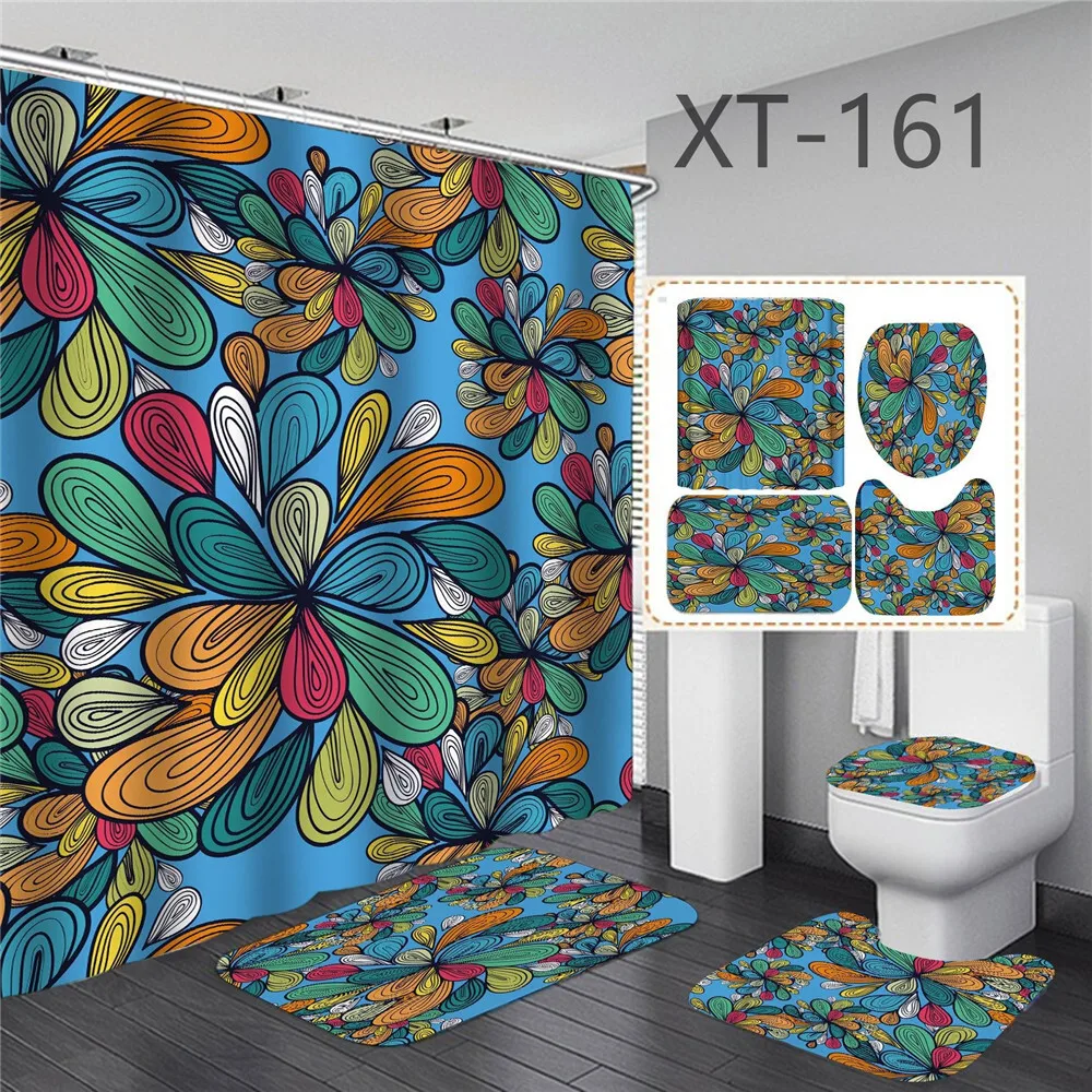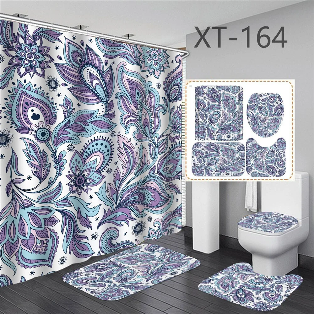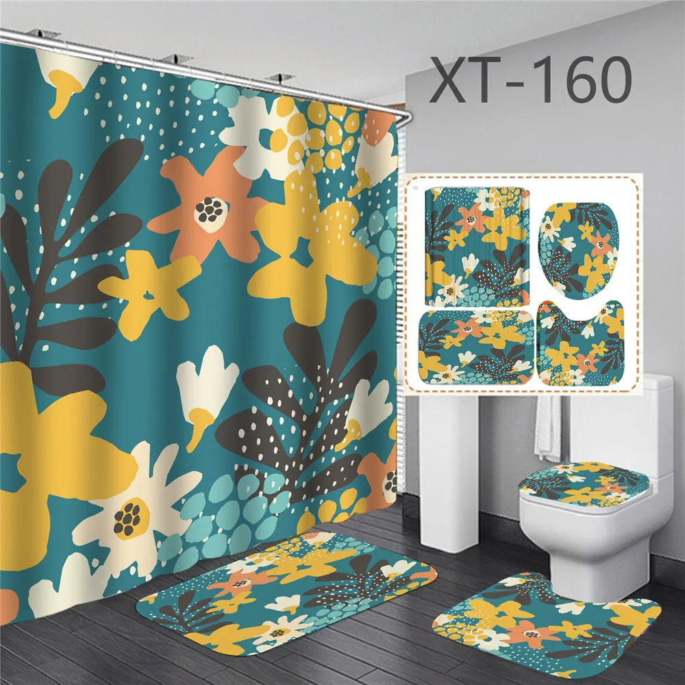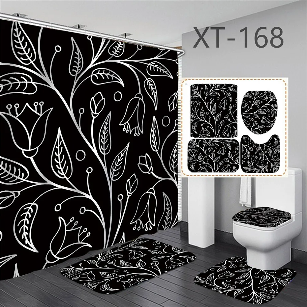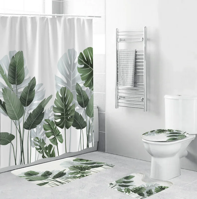 • Includes one shower curtain, one pedestal rug, one lid toilet cover, one bath mat