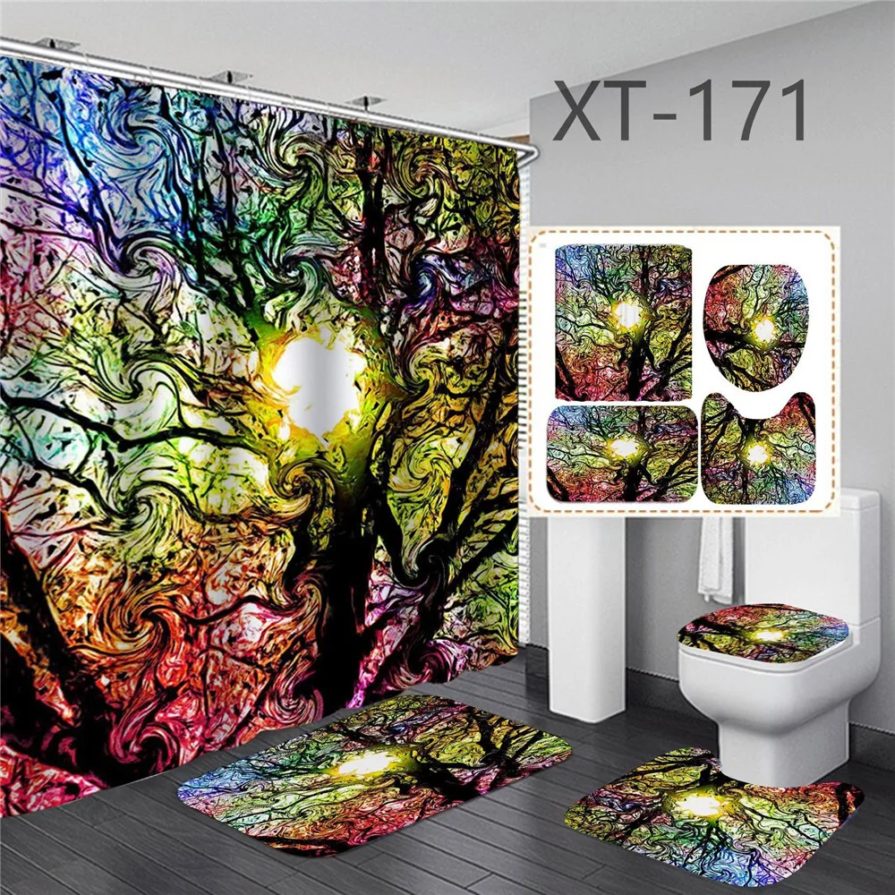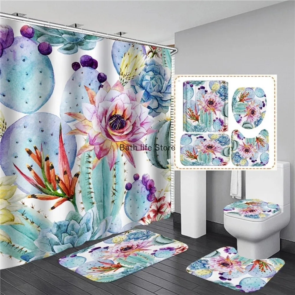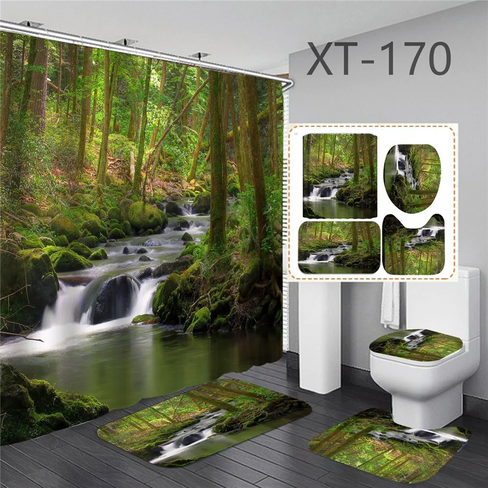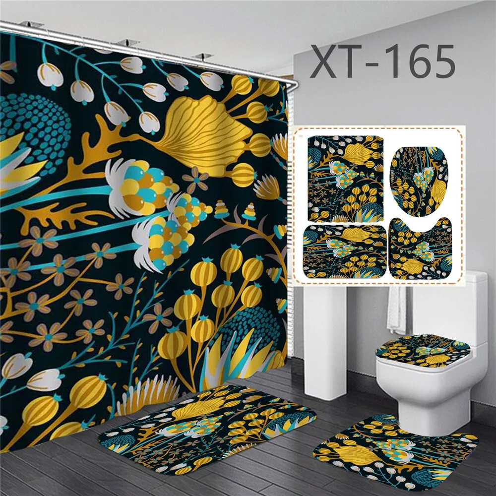 • Includes one shower curtain, one pedestal rug, one lid toilet cover, one bath mat