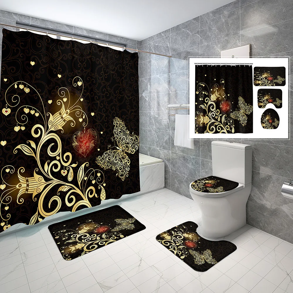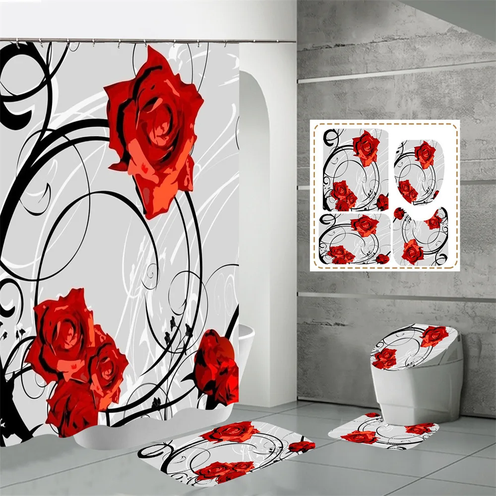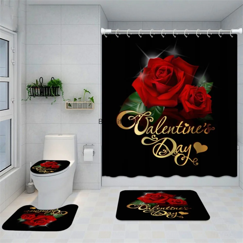 This shower curtain set is not just about looks; it’s about transforming your bathroom into a personal sanctuary. The Valentine’s Day ambiance, combined with the dramatic color scheme, creates a warm and inviting atmosphere. It’s the ideal choice for those special moments when you want your bathroom to become a reflection of your personality and style.