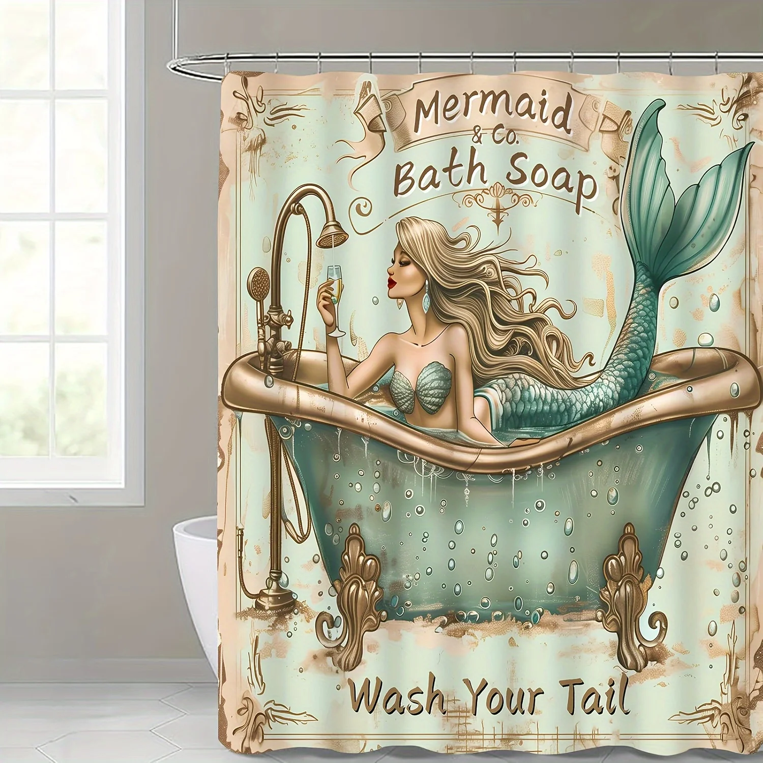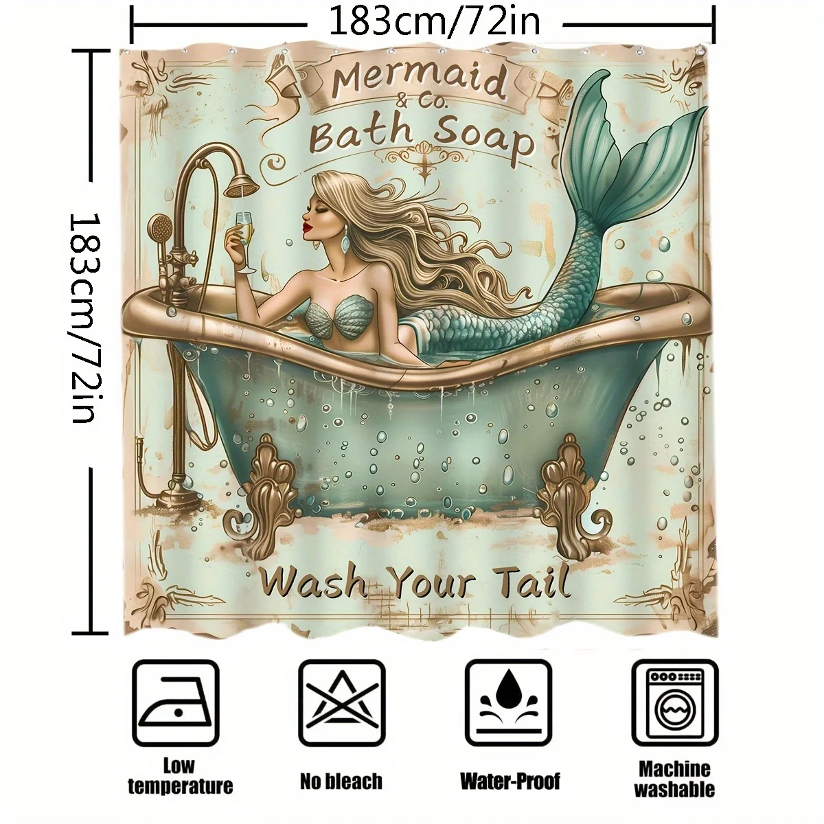 Constructed with high-quality polyester, the Vintage Mermaid Bath Soap Shower Curtain ensures longevity and environmental care. This eco-friendly material not only lasts through daily use but maintains its aesthetic appeal, promising lasting beauty in your bathroom retreat.